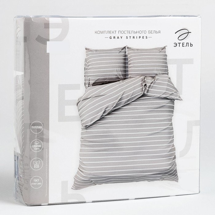 Постельное бельё Этель Евро Gray stripes 200х217см,220х240см,70х70см-2 шт, 100% хлопок, поплин