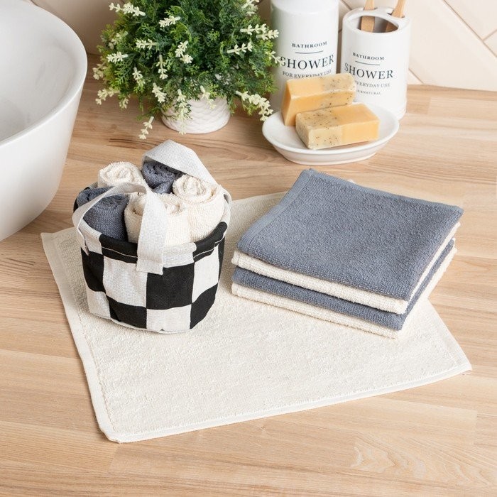 Набор салфеток махровых универсальных в корзинке Этель «Клетка» 30*30см-5шт,100% хл,340г/м2