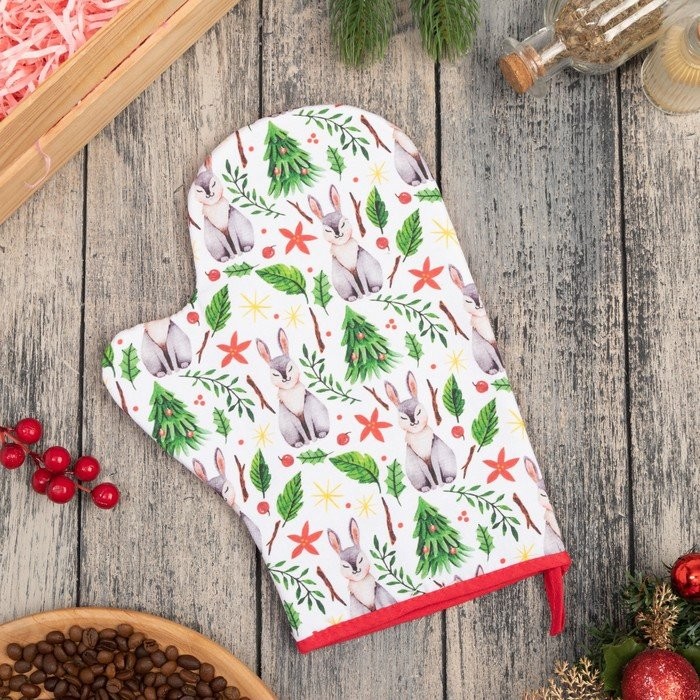 Варежка-прихватка «Happy New Year» 20×28 см, саржа, 100% х/л, ватин 250 г/м2
