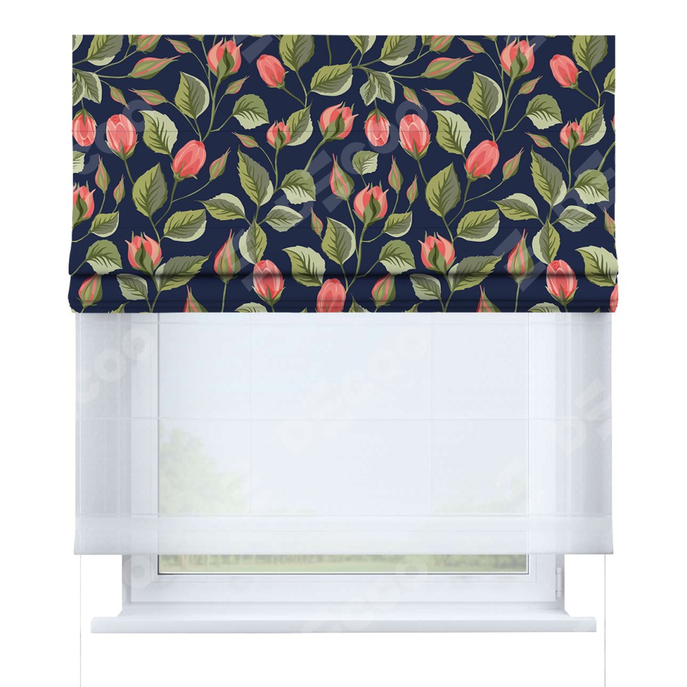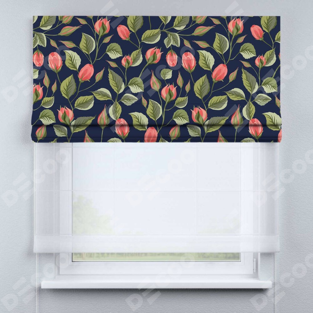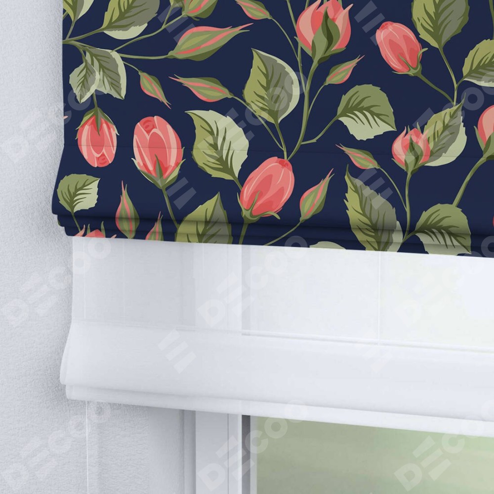Римская штора день-ночь производителя «Cortin», используется для проёма, пошита из двух полотен, с лицевой блэкаут с нанесением сублимационной печати «Красная роза», вторая ткань тюль (по стандарту комплектуется тюль белого цвета артикул V-01). Имеет универсальный механизм и подходит для монтажа: на потолок, на стену и в нишу.