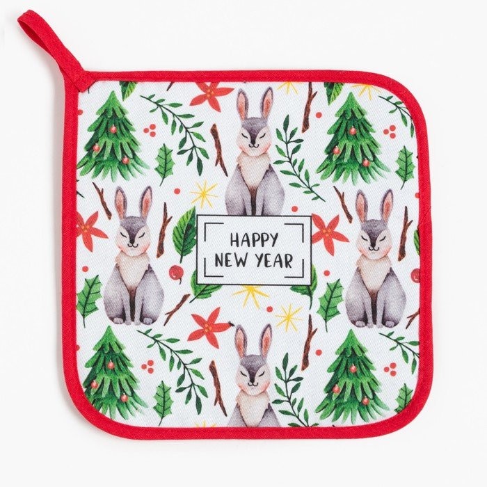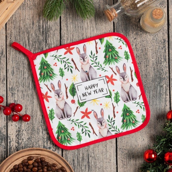 Прихватка «Happy New Year» 19×19 см, саржа, 100% х/л, ватин 250 г/м2