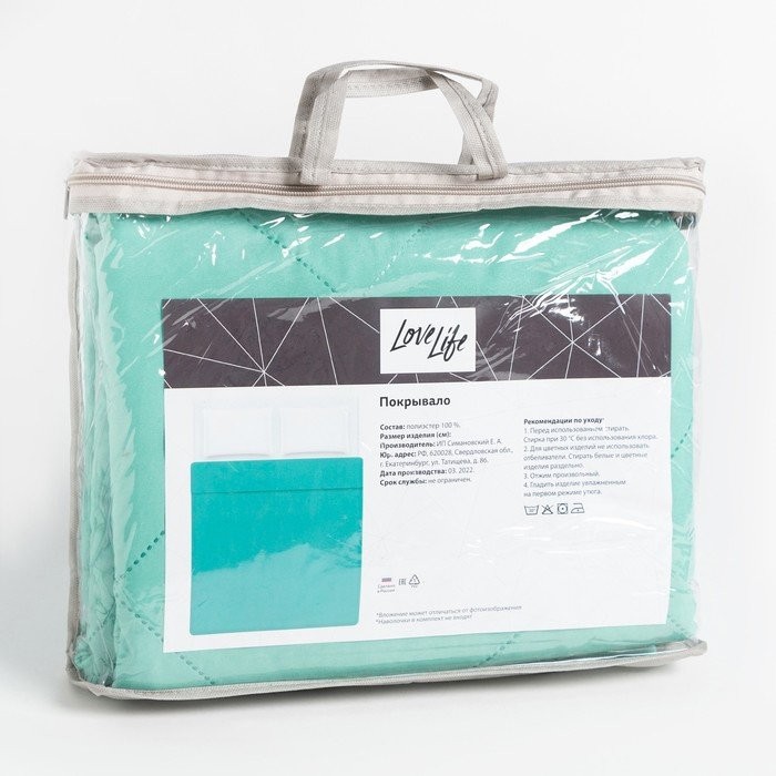 Покрывало LoveLife 1,5 сп 150×210±5 см, цвет мятный, микрофайбер, 100% п/э