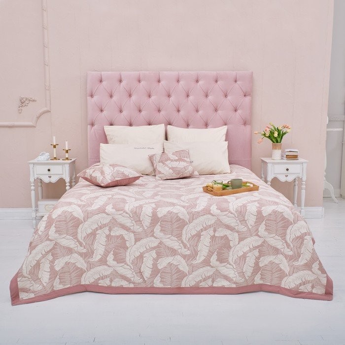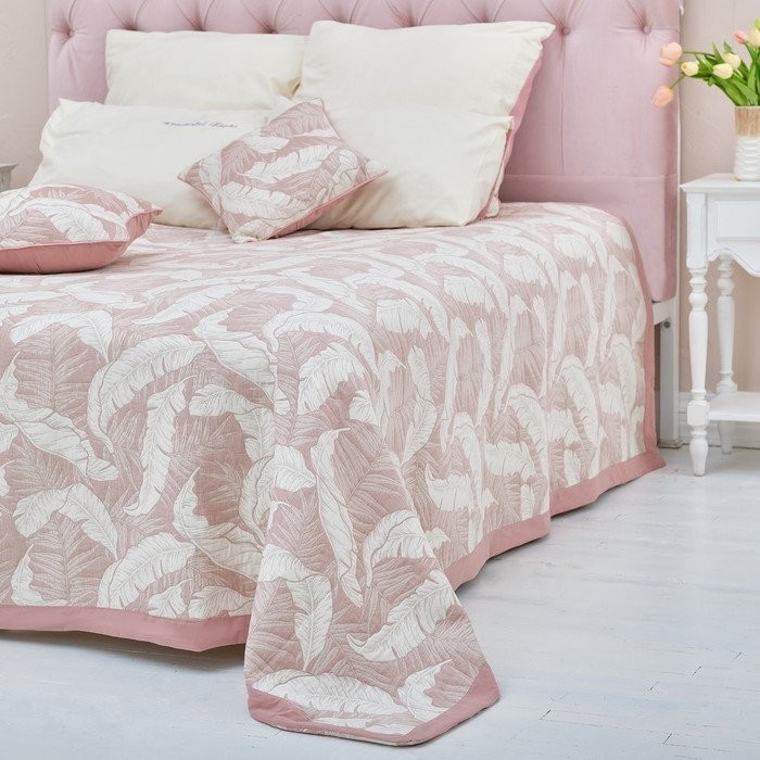 Покрывало хлопковое Этель «Перья» 220×240 см, цвет бежевый, 100% хлопок, 300гр/м2