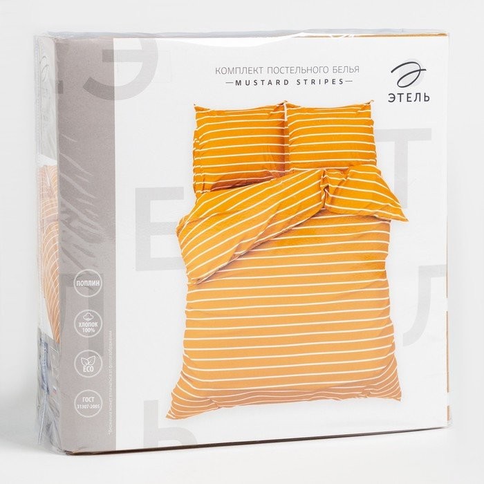 Постельное бельё Этель 2 сп Mustard stripes 175х215см, 200х220см, 70х70см-2 шт, 100% хлопок, поплин