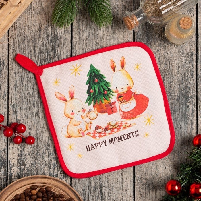 Прихватка «Happy moments» 19×19 см, саржа, 100% х/л, ватин 250 г/м2