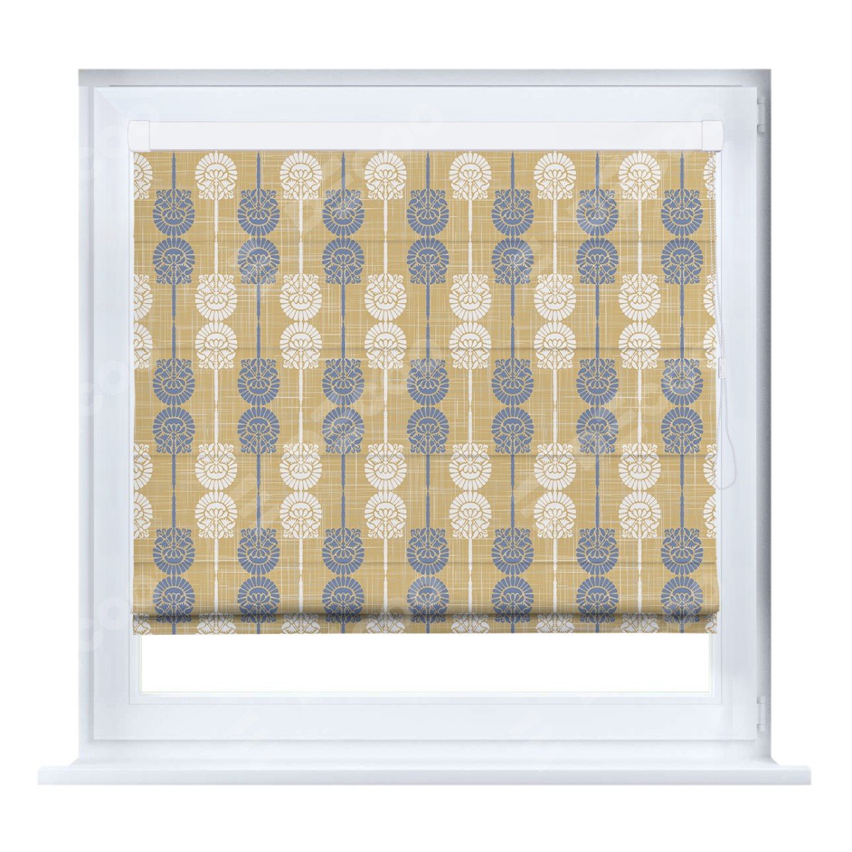 Римская штора кассетного типа, производителя «Cortin», устанавливается только на пластиковые окна и прилегает к стеклопакету, пошита из ткани блэкаут с нанесением сублимационной печати «Венок из ромашки».