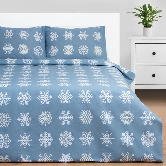 Комплект: пододеяльник и 2 наволочки «Снежинки» 175×215 см, 50×70 см — 2 шт, 100% хлопок