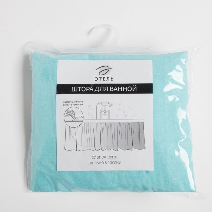 Штора для ванной «Этель» бирюзовый, 160×48 см, 100% хлопок
