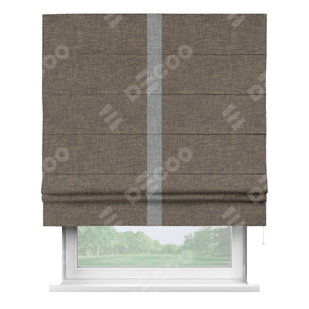 Римская штора «Кортин» с кантом Хайвэй, для проема, ткань рогожка димаут, коричневый