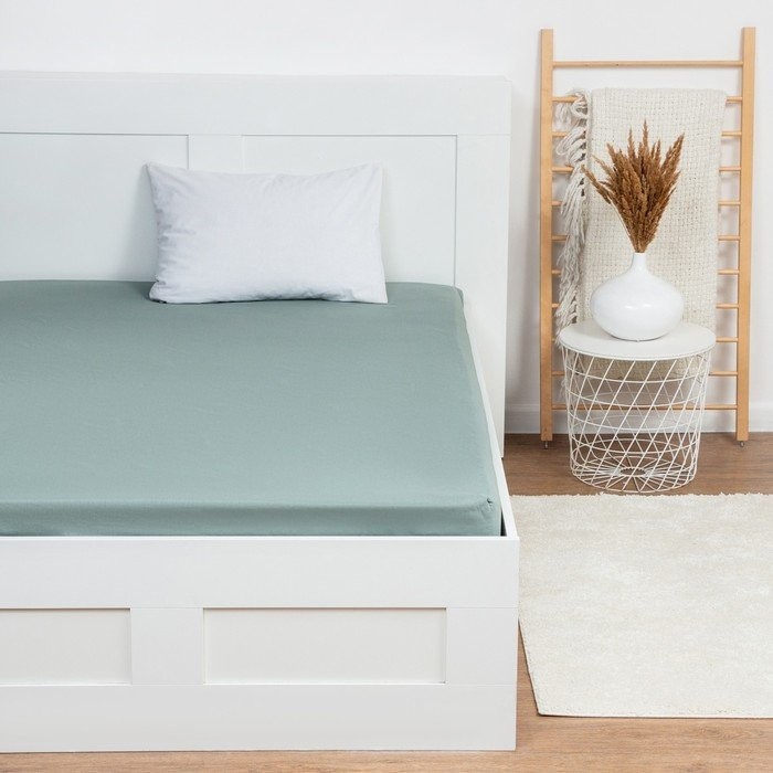 Простыня на резинке Этель 180х200×25, цвет серо-зелёный, 100% хлопок, бязь 125г/м2