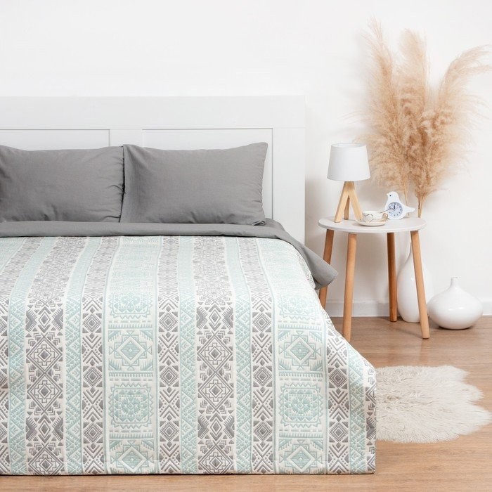 Покрывало хлопковое Этель «Инди» 200×240 см, цвет серо-зелёный, 100% хлопок, 300гр/м2
