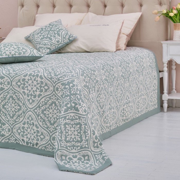 Покрывало хлопковое Этель «Орнамент» 180×240 см, цвет зелёный, 100% хлопок, 300гр/м2