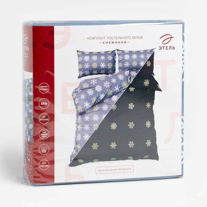 Комплект: пододеяльник и 2 наволочки «Снежинки» 143×215 см, 50×70 см — 2 шт, 100% хлопок