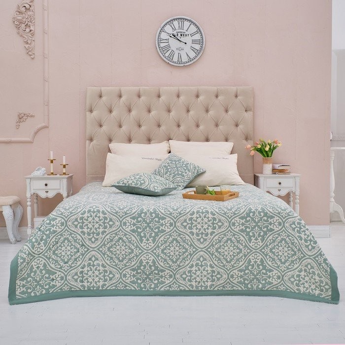 Покрывало хлопковое Этель «Орнамент» 200×240 см, цвет зелёный, 100% хлопок, 300гр/м2