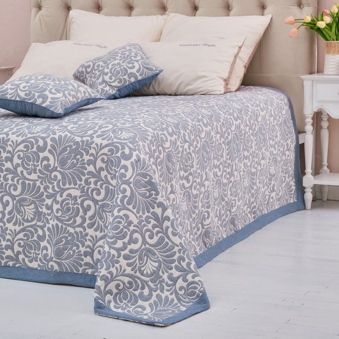 Покрывало хлопковое Этель «Узоры» 180×240 см, цвет серый, 100% хлопок, 300гр/м2