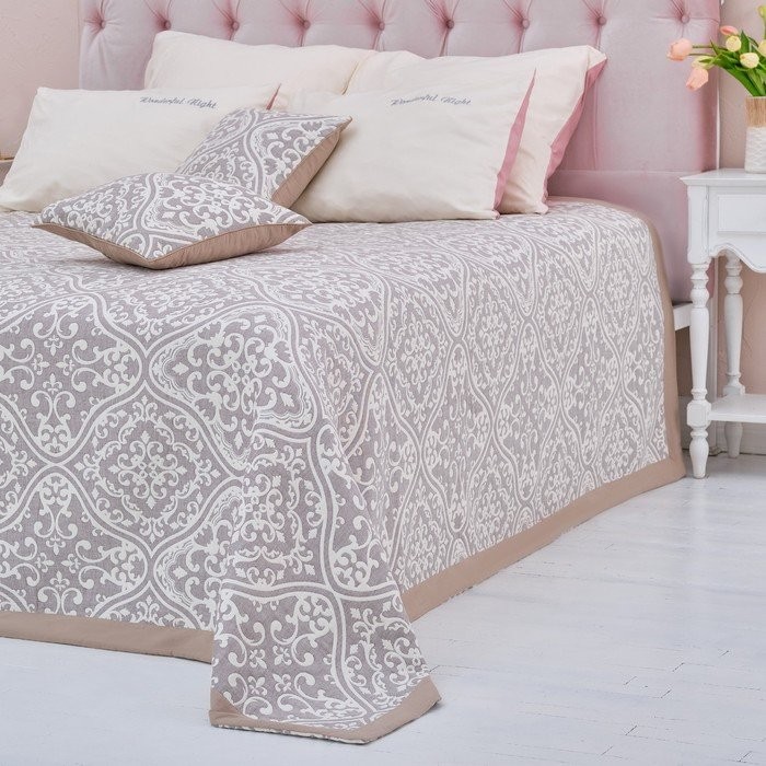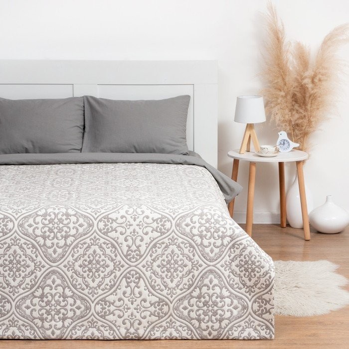 Покрывало хлопковое Этель «Орнамент» 220×240 см, цвет серый, 100% хлопок, 300гр/м2