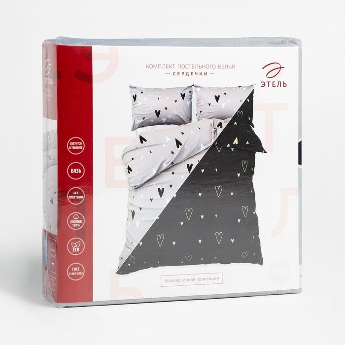 Комплект: пододеяльник и 2 наволочки «Сердечки» 143×215 см, 50×70 см — 2 шт, 100% хлопок