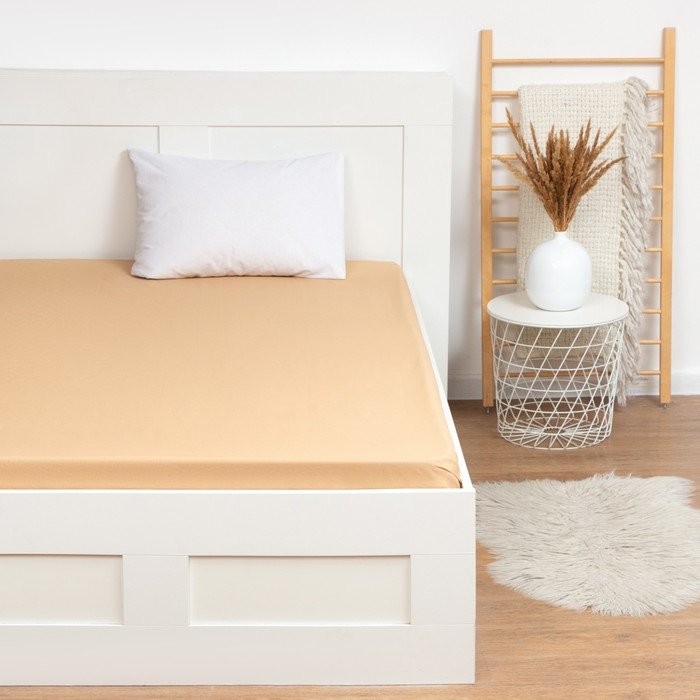 Простыня на резинке Этель 160х200×25, цвет бежевый, 100% хлопок, бязь 125г/м2