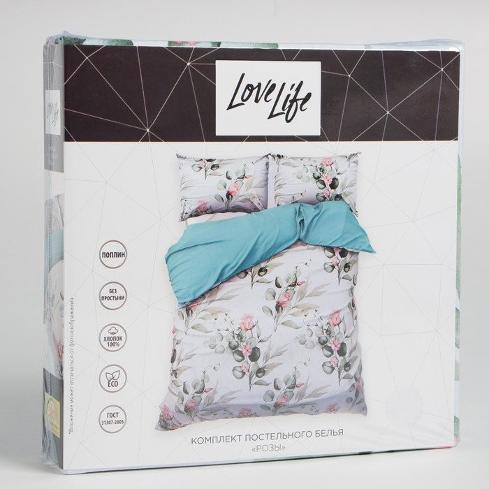 КПБ евро LoveLife «Розы»: пододеяльник 200*217см+наволочка 70*70см-2шт, поплин, 125 г/м²