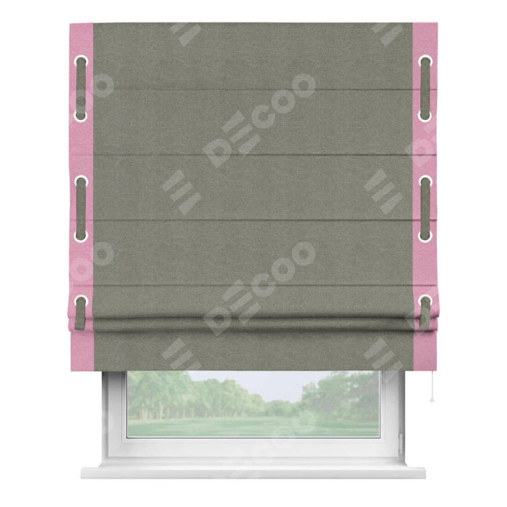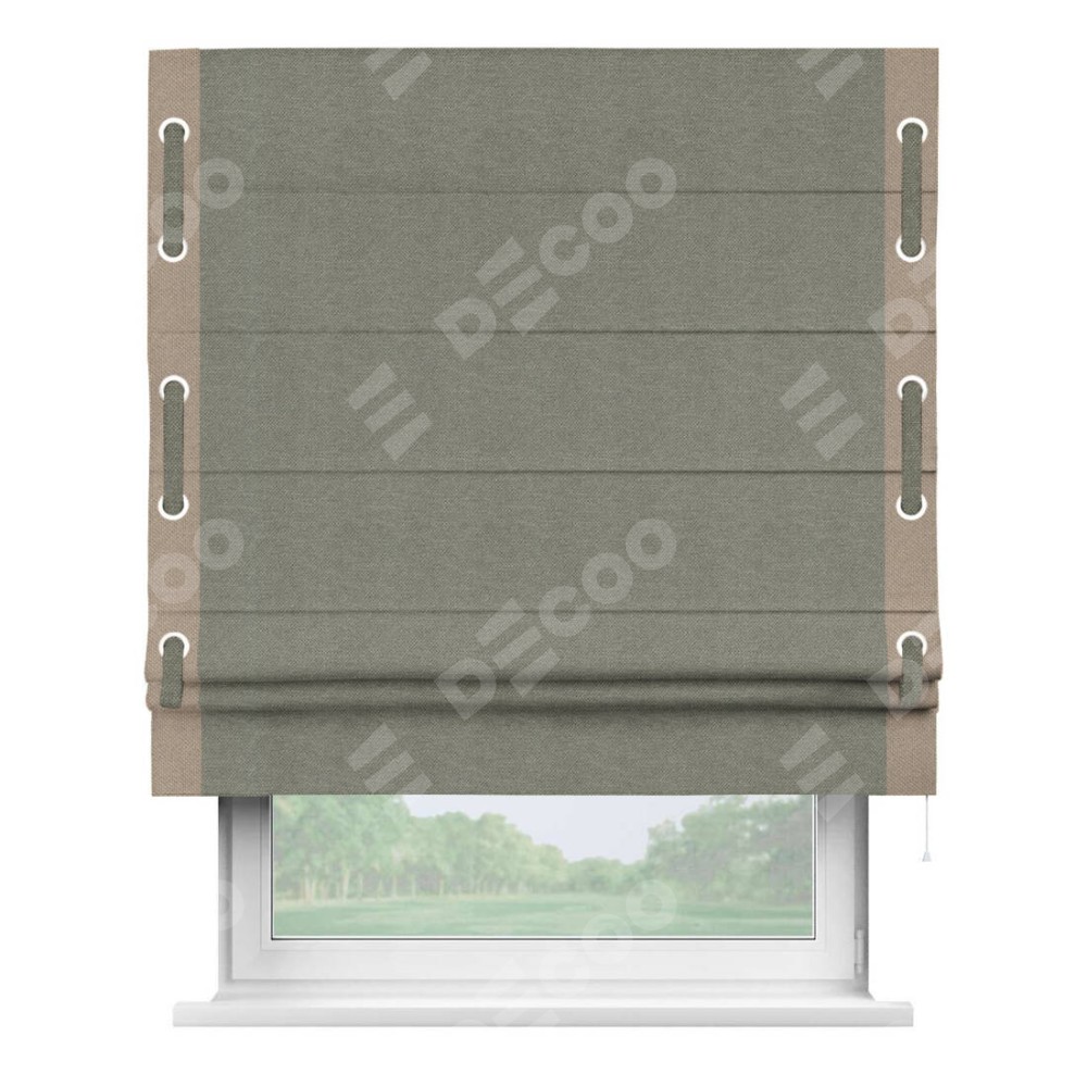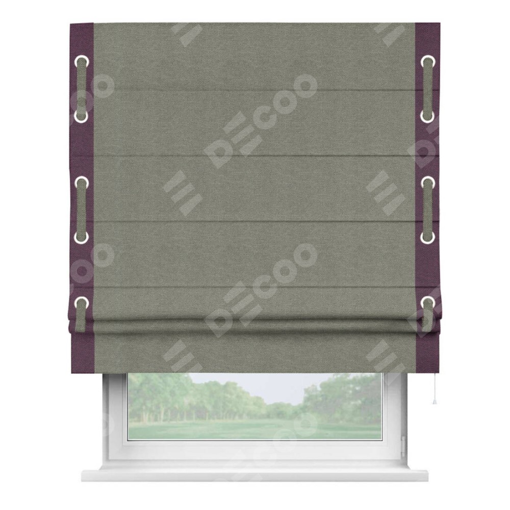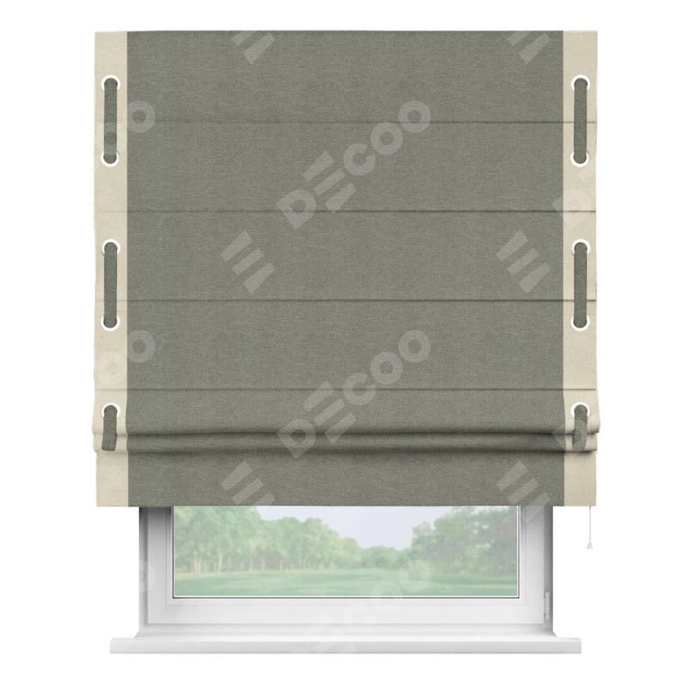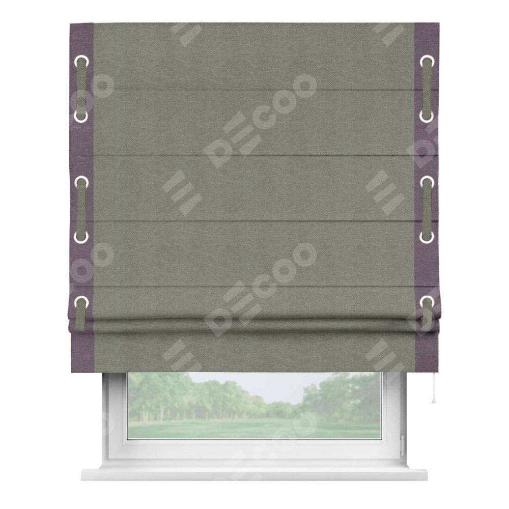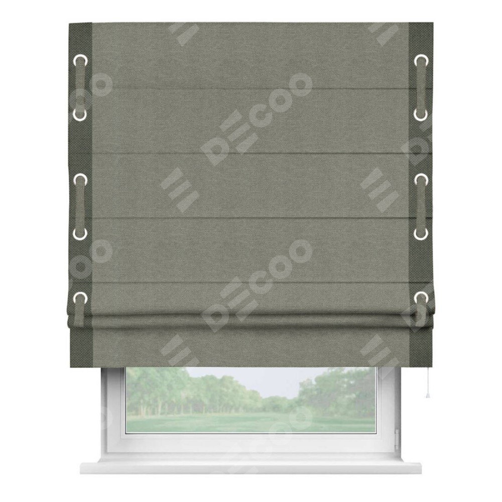 Римская штора «Кортин» с кантом Стрим Дуо (люверсы с пояском), для проема, ткань лён димаут, стальной