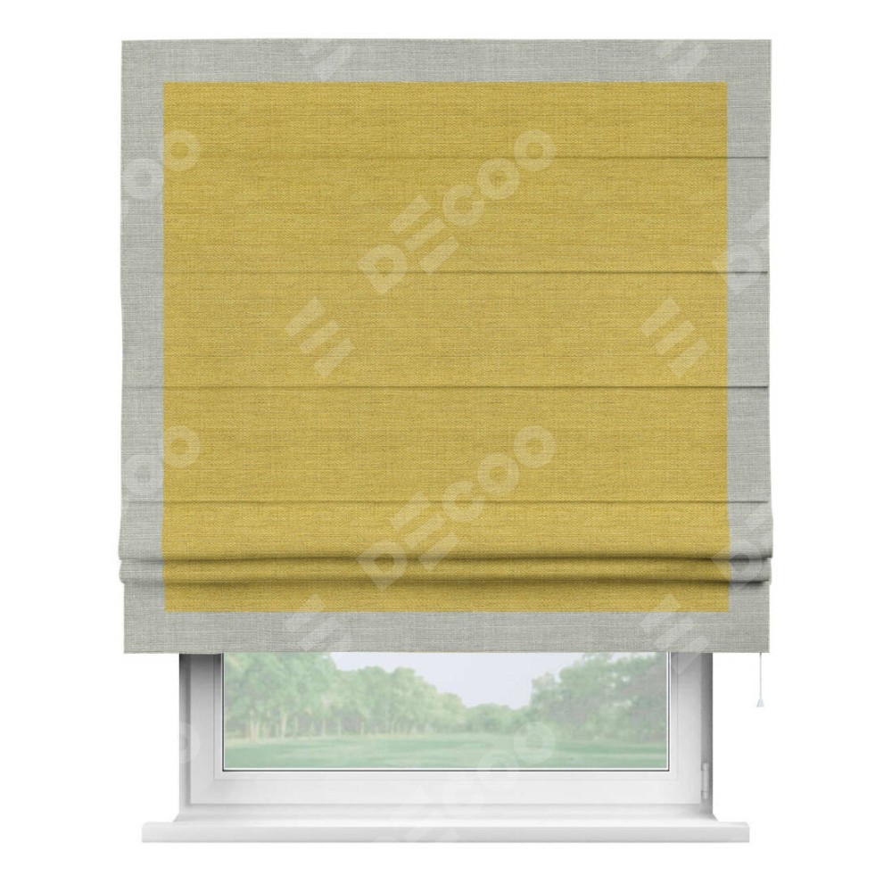 Римская штора «Кортин» с кантом Чесс, для проема, ткань лён светло-салатовый