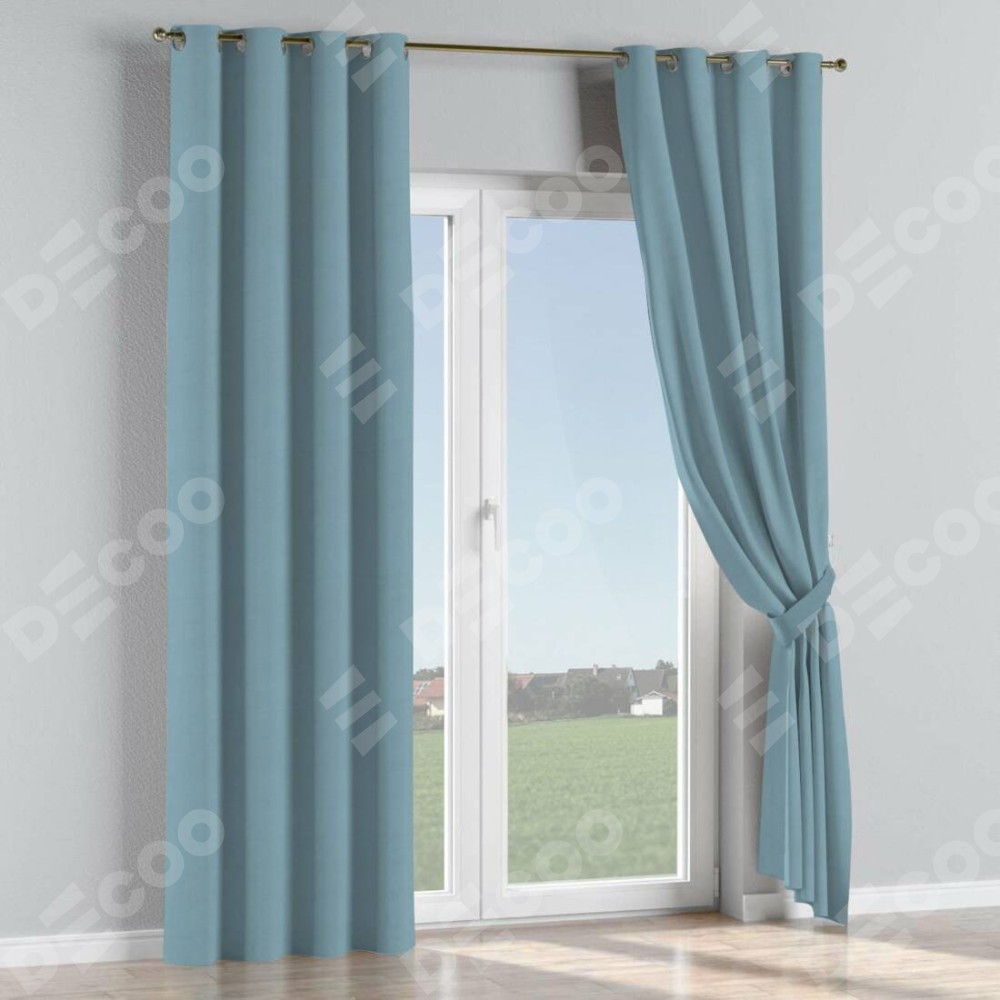 Комплект прямых штор, от производителя «Cortin», пошиты из ткани блэкаут однотонный серо-голубой, артикул ткани 29327. Данная модель пошита на люверсах, комплектуется на выбор круглым карнизом и подходит для монтажа на стену или потолок. Прямые шторы на люверсах шьются по стандарту с коэффициентом 1/2 (на 100 см. ширины проёма 200 см. ширины ткани), отличительным преимуществом данной модели является простой способ монтажа. Достаточно повесить ее на трубу и штора готова!