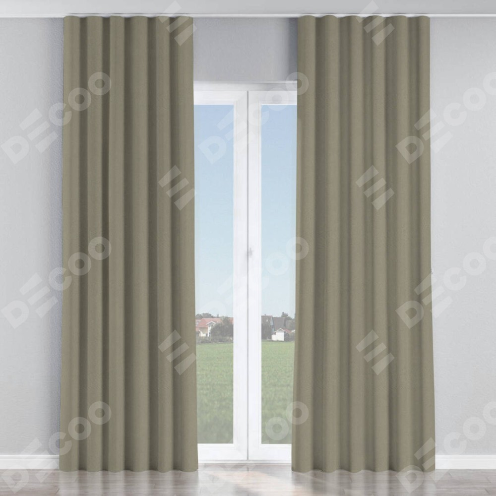 Комплект прямых штор, от производителя «Cortin», пошиты из ткани блэкаут однотонный серо-зелёный, артикул ткани 29568. С изнаночной стороны в верхней части штор пристрачивается шторная лента с декоративными складками «Волна». Для создания элегантных складок прямые шторы шьются по стандарту с коэффициентом 1:2 (на 100 см. ширины проёма 200 см. ширины ткани).
