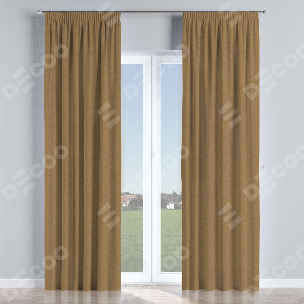 Комплект прямых штор, от производителя «Cortin», пошиты из ткани лён димаут коричневый, артикул ткани 83026. С изнаночной стороны в верхней части штор пристрачивается шторная лента с декоративными складками «Карандаш». Для создания элегантных складок прямые шторы шьются по стандарту с коэффициентом 1:2 (на 100 см. ширины проёма 200 см. ширины ткани).