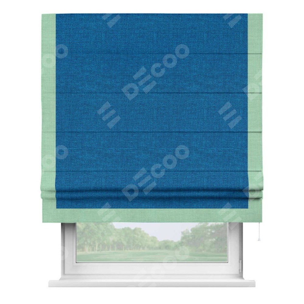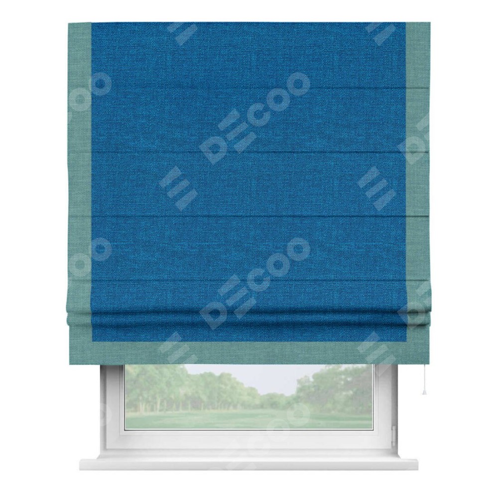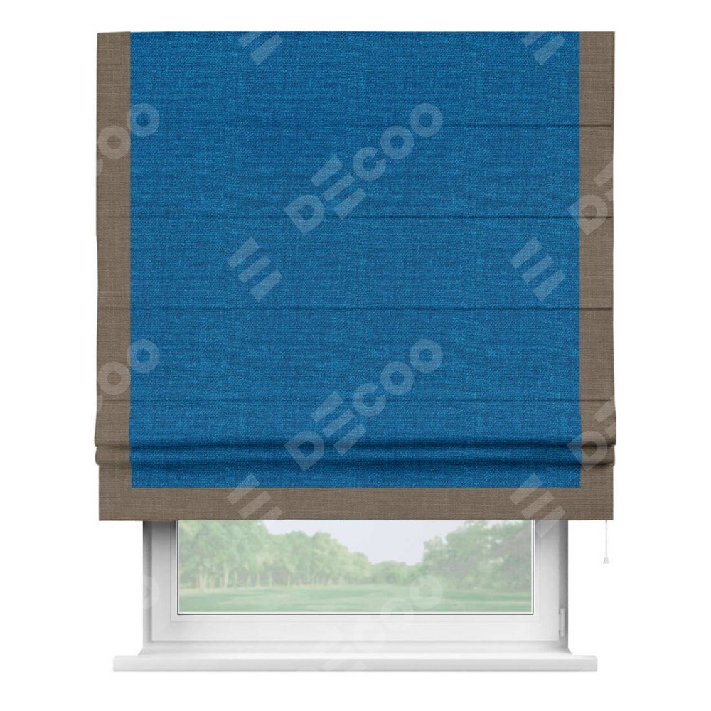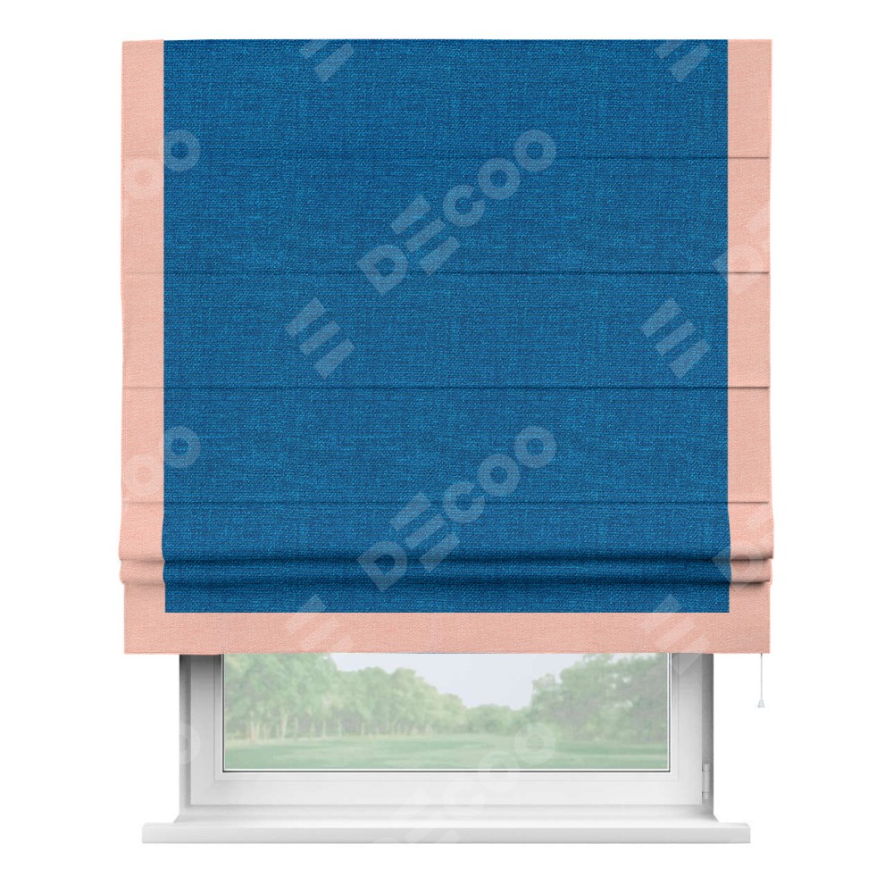 Римская штора «Кортин» с кантом Виктория, для проема, ткань лён синий