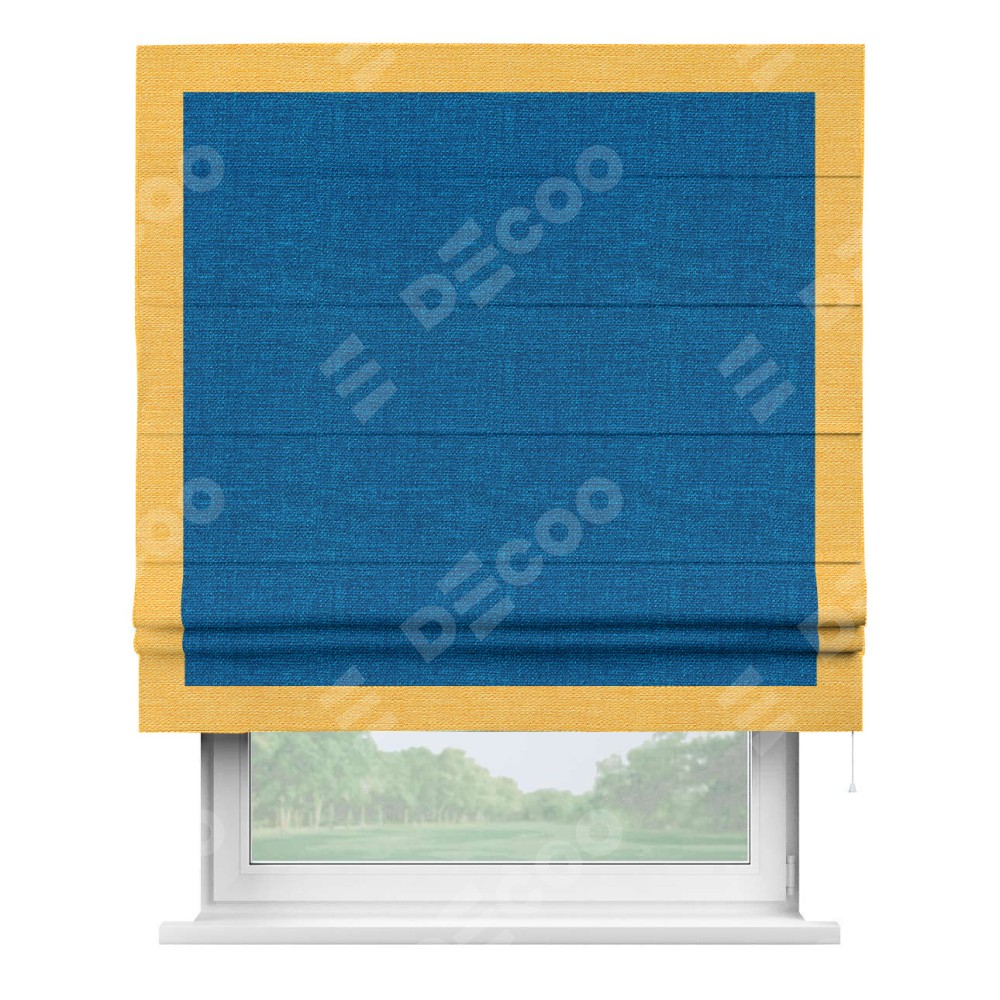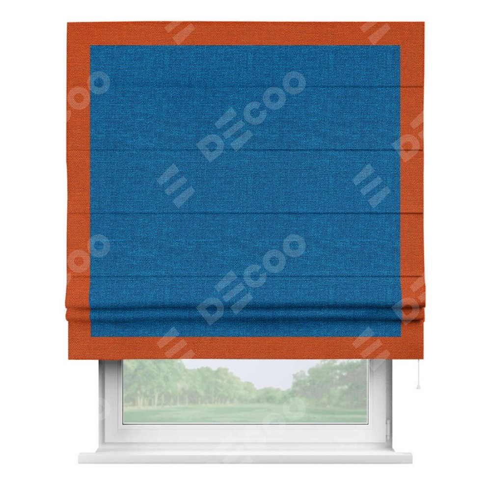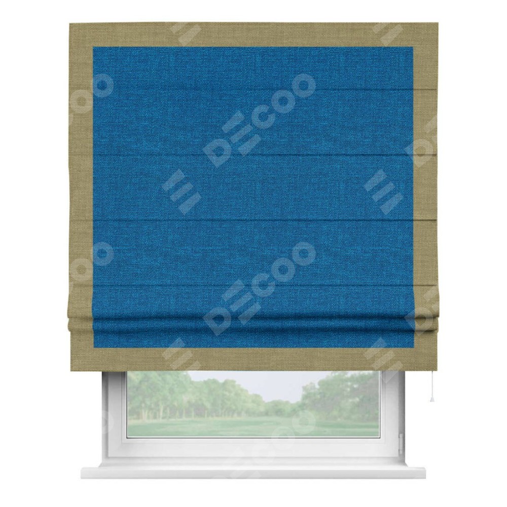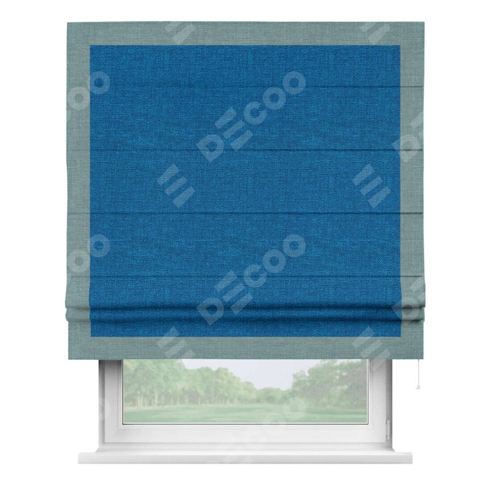 Римская штора «Кортин» с кантом Чесс, для проема, ткань лён синий