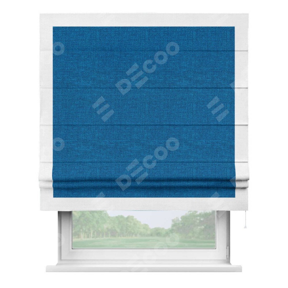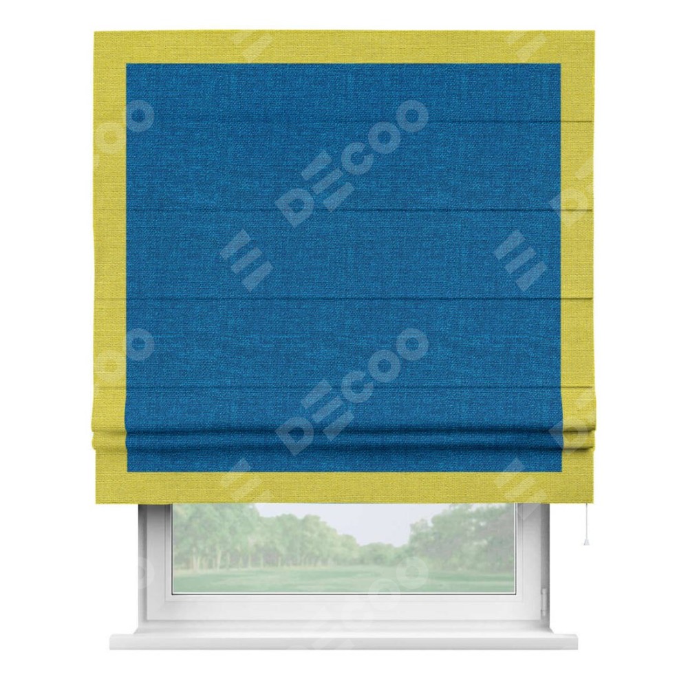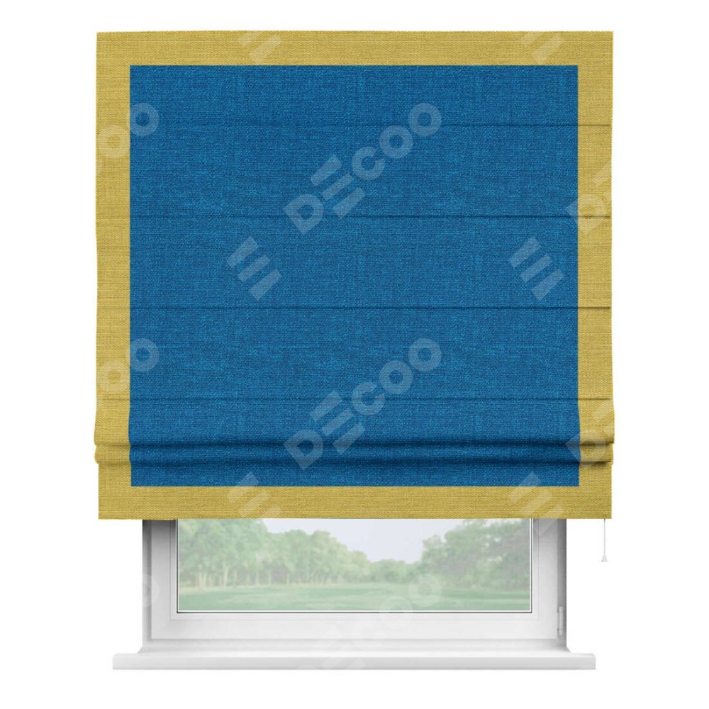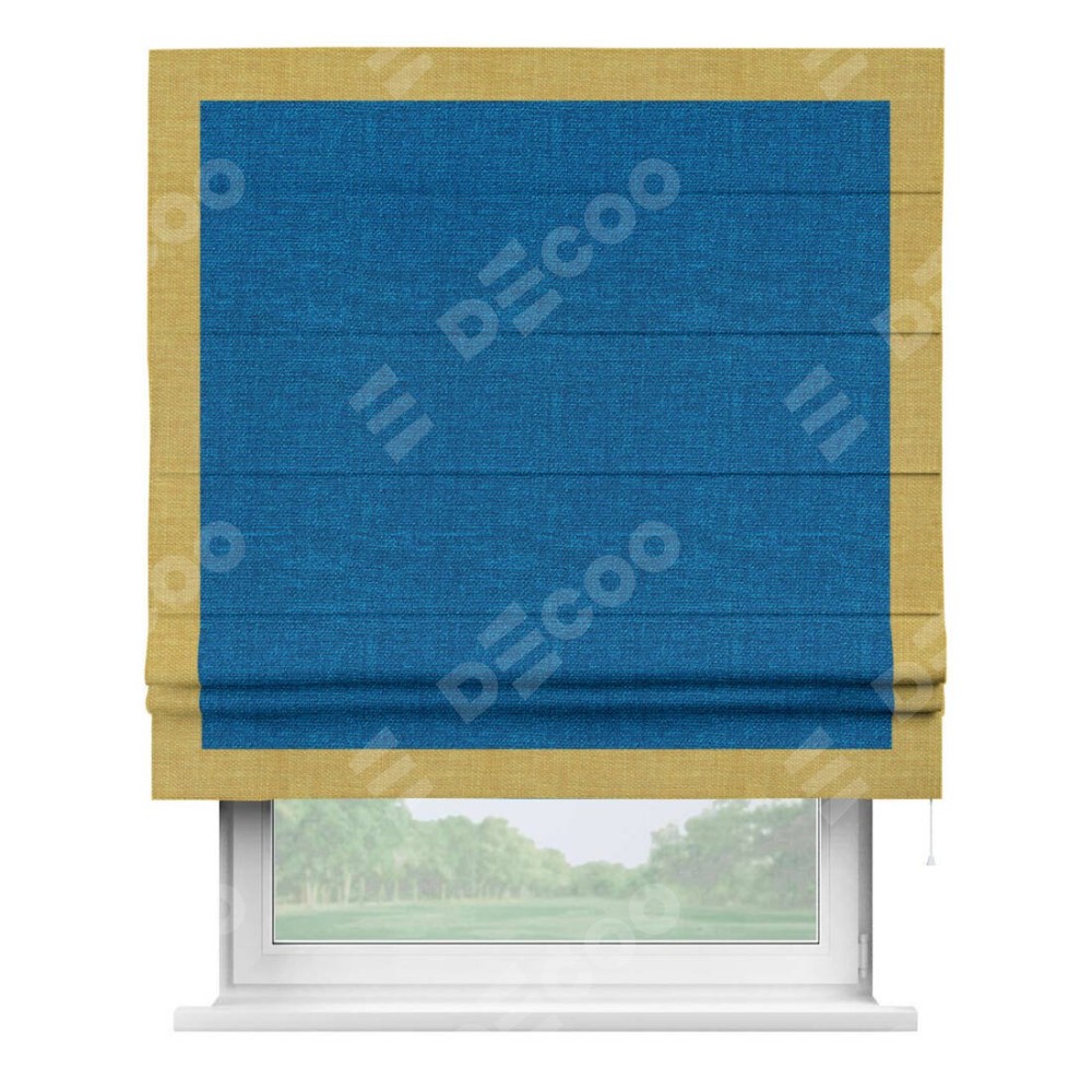 Римская штора «Кортин» с кантом Чесс, для проема, ткань лён синий