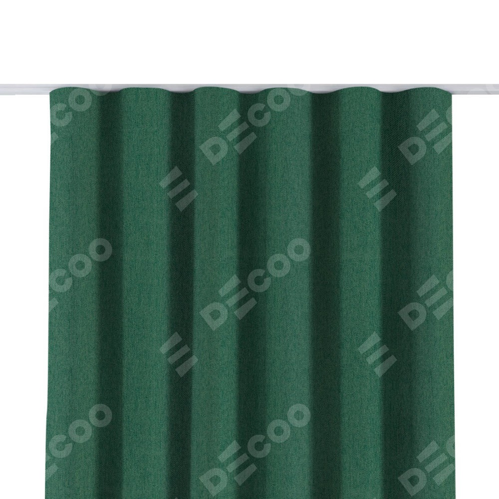 Комплект прямых штор, от производителя «Cortin», пошиты из ткани твид блэкаут зелёный, артикул ткани 21589. С изнаночной стороны в верхней части штор пристрачивается шторная лента с декоративными складками «Волна». Для создания элегантных складок прямые шторы шьются по стандарту с коэффициентом 1:2 (на 100 см. ширины проёма 200 см. ширины ткани).