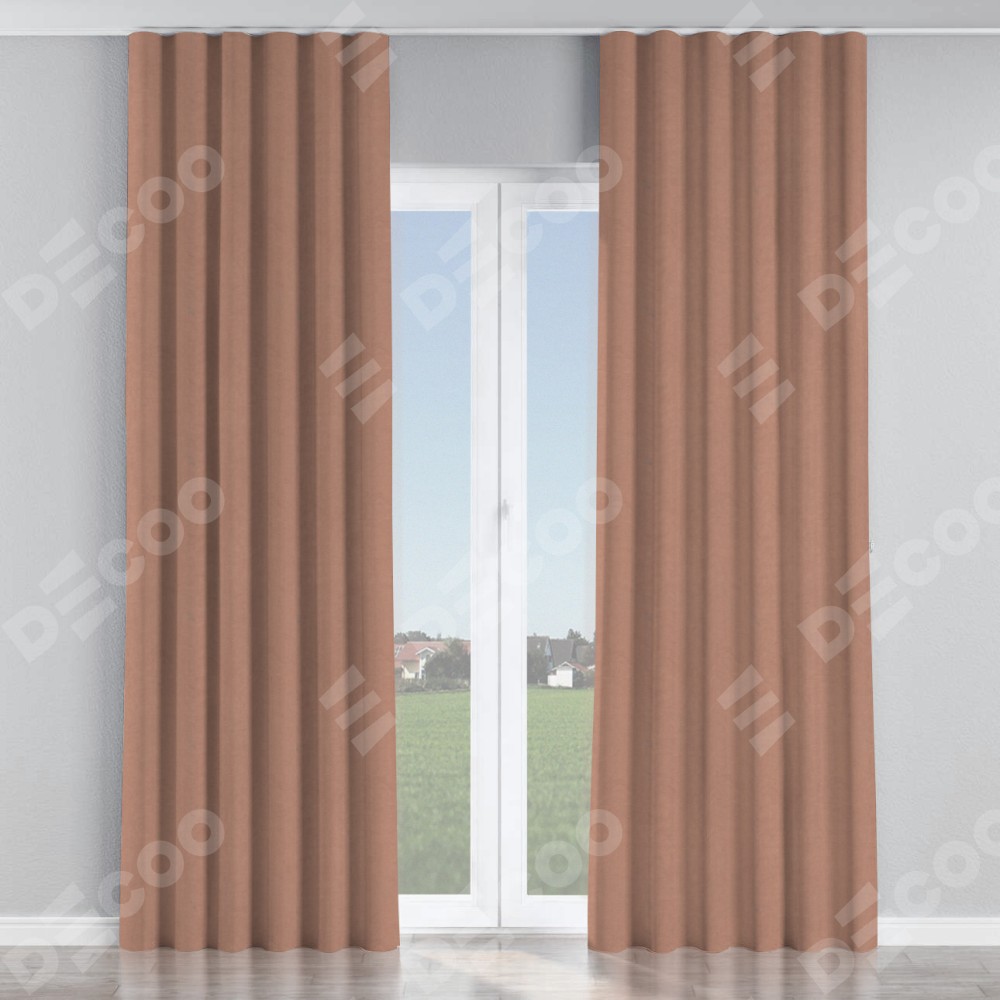 Комплект прямых штор, от производителя «Cortin», пошиты из ткани вельвет брусничный джем, артикул ткани 17750. С изнаночной стороны в верхней части штор пристрачивается шторная лента с декоративными складками «Волна». Для создания элегантных складок прямые шторы шьются по стандарту с коэффициентом 1:2 (на 100 см. ширины проёма 200 см. ширины ткани).