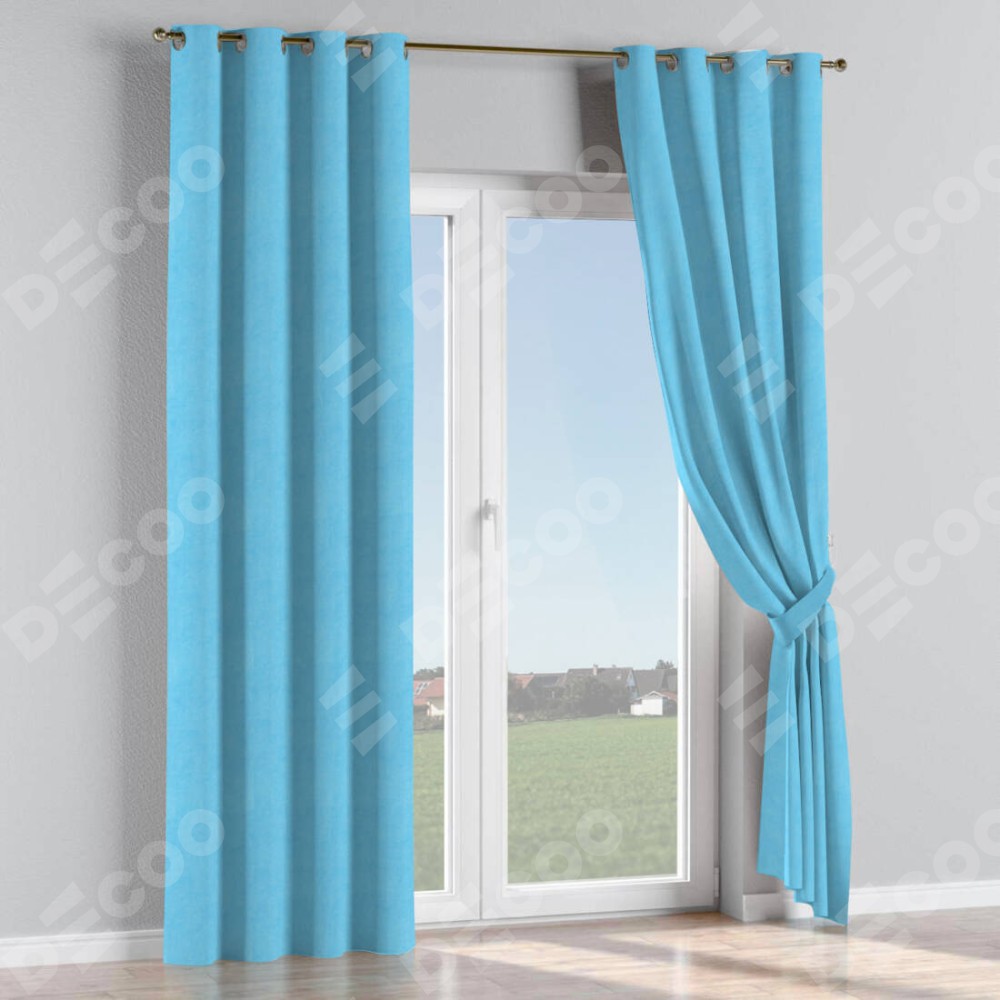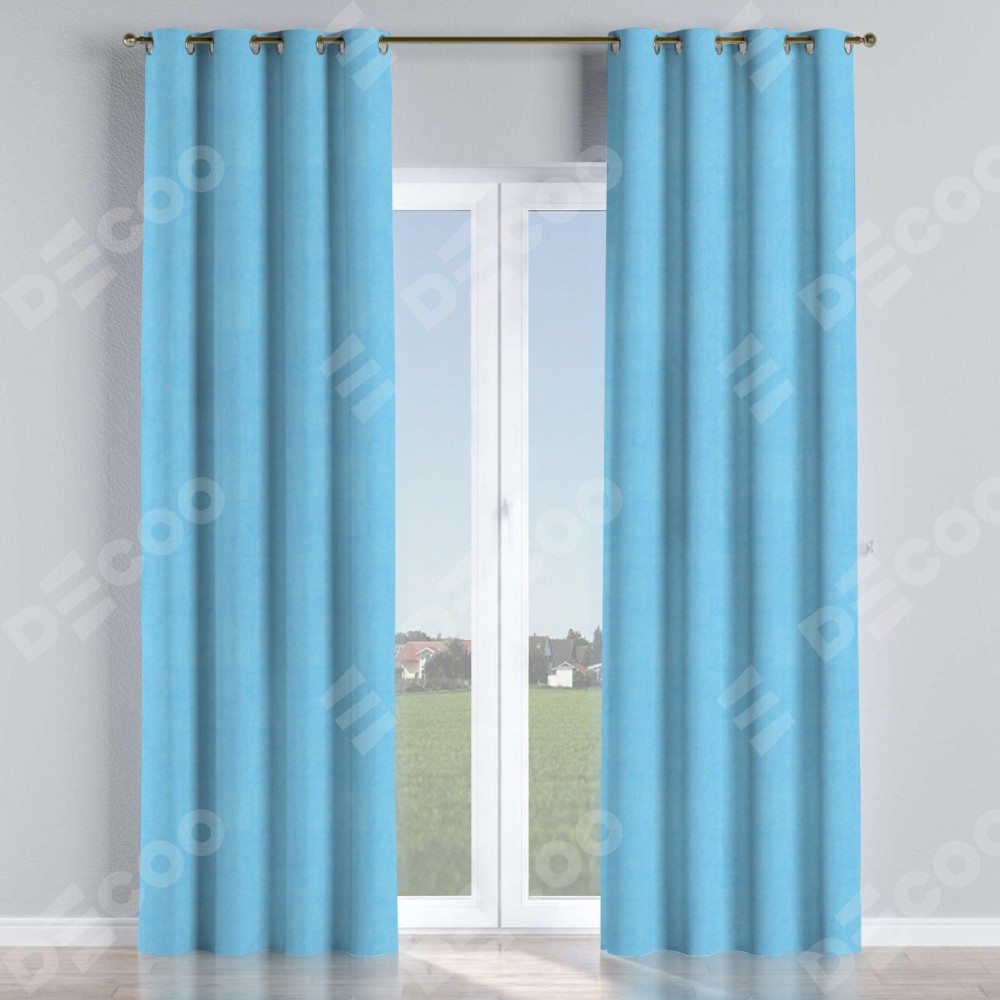 Комплект прямых штор, от производителя «Cortin», пошиты из ткани вельвет голубой, артикул ткани 85544. Данная модель пошита на люверсах, комплектуется на выбор круглым карнизом и подходит для монтажа на стену или потолок. Прямые шторы на люверсах шьются по стандарту с коэффициентом 1/2 (на 100 см. ширины проёма 200 см. ширины ткани), отличительным преимуществом данной модели является простой способ монтажа. Достаточно повесить ее на трубу и штора готова!