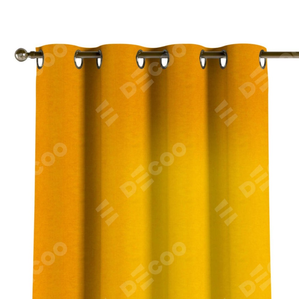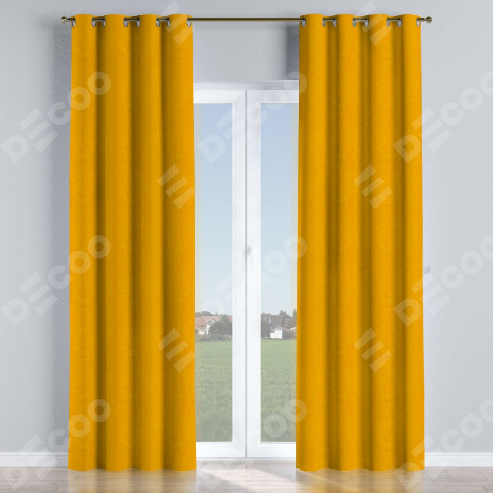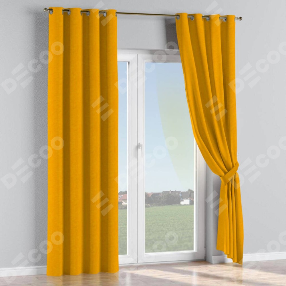 Комплект прямых штор, от производителя «Cortin», пошиты из ткани вельвет желтый, артикул ткани 85547. Данная модель пошита на люверсах, комплектуется на выбор круглым карнизом и подходит для монтажа на стену или потолок. Прямые шторы на люверсах шьются по стандарту с коэффициентом 1/2 (на 100 см. ширины проёма 200 см. ширины ткани), отличительным преимуществом данной модели является простой способ монтажа. Достаточно повесить ее на трубу и штора готова!