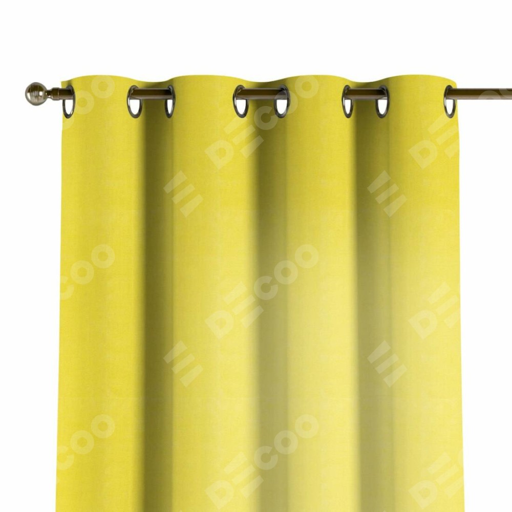 Комплект прямых штор, от производителя «Cortin», пошиты из ткани вельвет светло-желтый, артикул ткани 30997. Данная модель пошита на люверсах, комплектуется на выбор круглым карнизом и подходит для монтажа на стену или потолок. Прямые шторы на люверсах шьются по стандарту с коэффициентом 1/2 (на 100 см. ширины проёма 200 см. ширины ткани), отличительным преимуществом данной модели является простой способ монтажа. Достаточно повесить ее на трубу и штора готова!