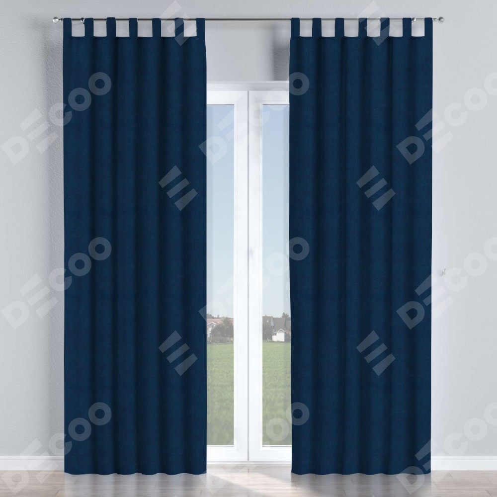Комплект прямых штор, от производителя «Cortin», пошиты из ткани вельвет тёмно-синий, артикул ткани 14152. Данная модель пошита на петлях, комплектуется на выбор круглым карнизом и подходит для монтажа на стену или потолок. Прямые шторы на петлях шьются по стандарту с коэффициентом 1/2 (на 100 см. ширины проёма 200 см. ширины ткани), отличительным преимуществом данной модели является простой способ монтажа. Достаточно повесить ее на трубу и штора готова!