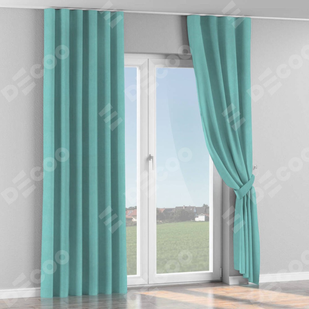 Комплект прямых штор, от производителя «Cortin», пошиты из ткани вельвет тиффани, артикул ткани 17765. С изнаночной стороны в верхней части штор пристрачивается шторная лента с декоративными складками «Волна». Для создания элегантных складок прямые шторы шьются по стандарту с коэффициентом 1:2 (на 100 см. ширины проёма 200 см. ширины ткани).