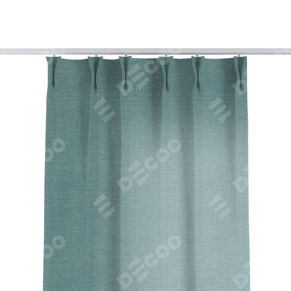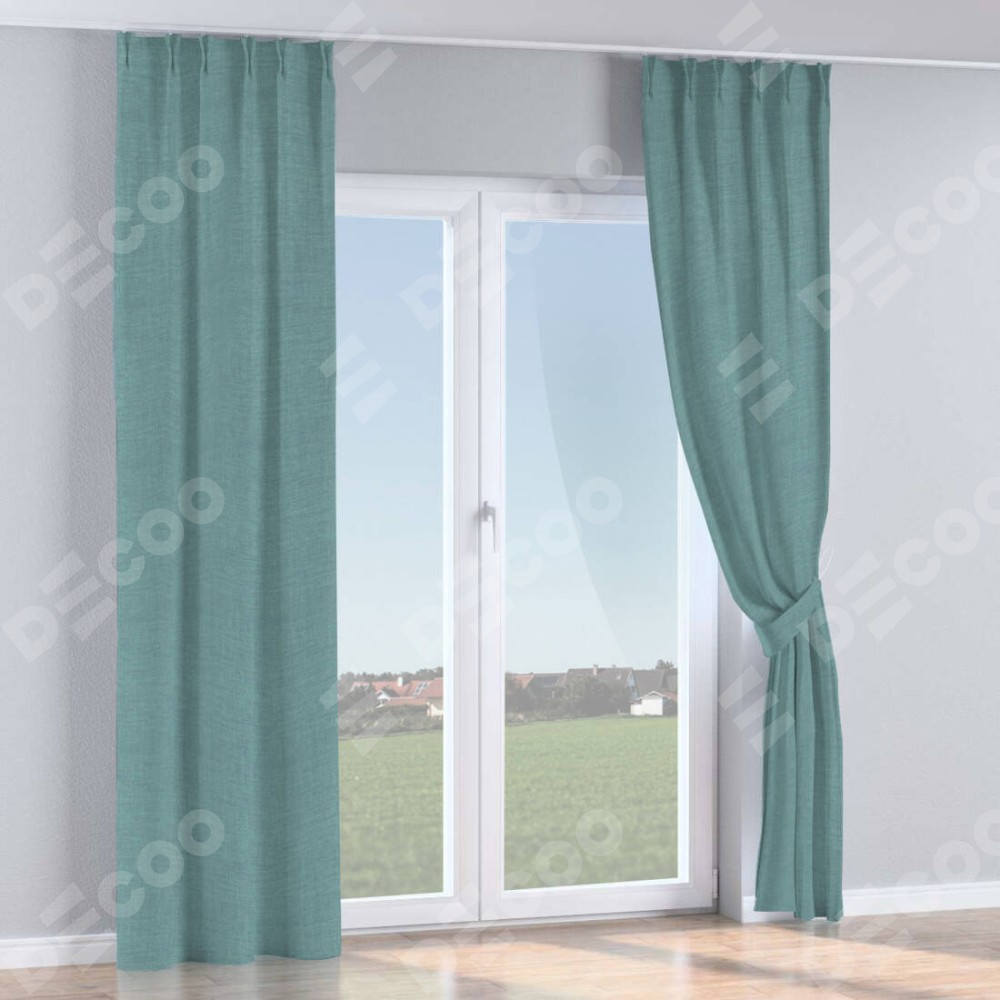 Комплект прямых штор, от производителя «Cortin», пошиты из ткани лён голубой, артикул ткани 74736. С изнаночной стороны в верхней части штор пристрачивается шторная лента с декоративными складками «Кустик». Для создания элегантных складок прямые шторы шьются по стандарту с коэффициентом 1:2 (на 100 см. ширины проёма 200 см. ширины ткани).