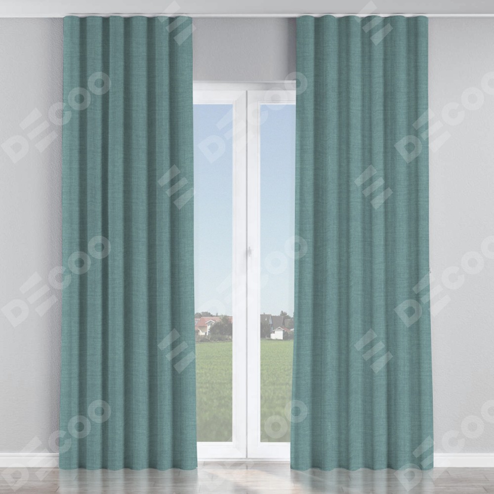 Комплект прямых штор, от производителя «Cortin», пошиты из ткани лён голубой, артикул ткани 74736. С изнаночной стороны в верхней части штор пристрачивается шторная лента с декоративными складками «Волна». Для создания элегантных складок прямые шторы шьются по стандарту с коэффициентом 1:2 (на 100 см. ширины проёма 200 см. ширины ткани).
