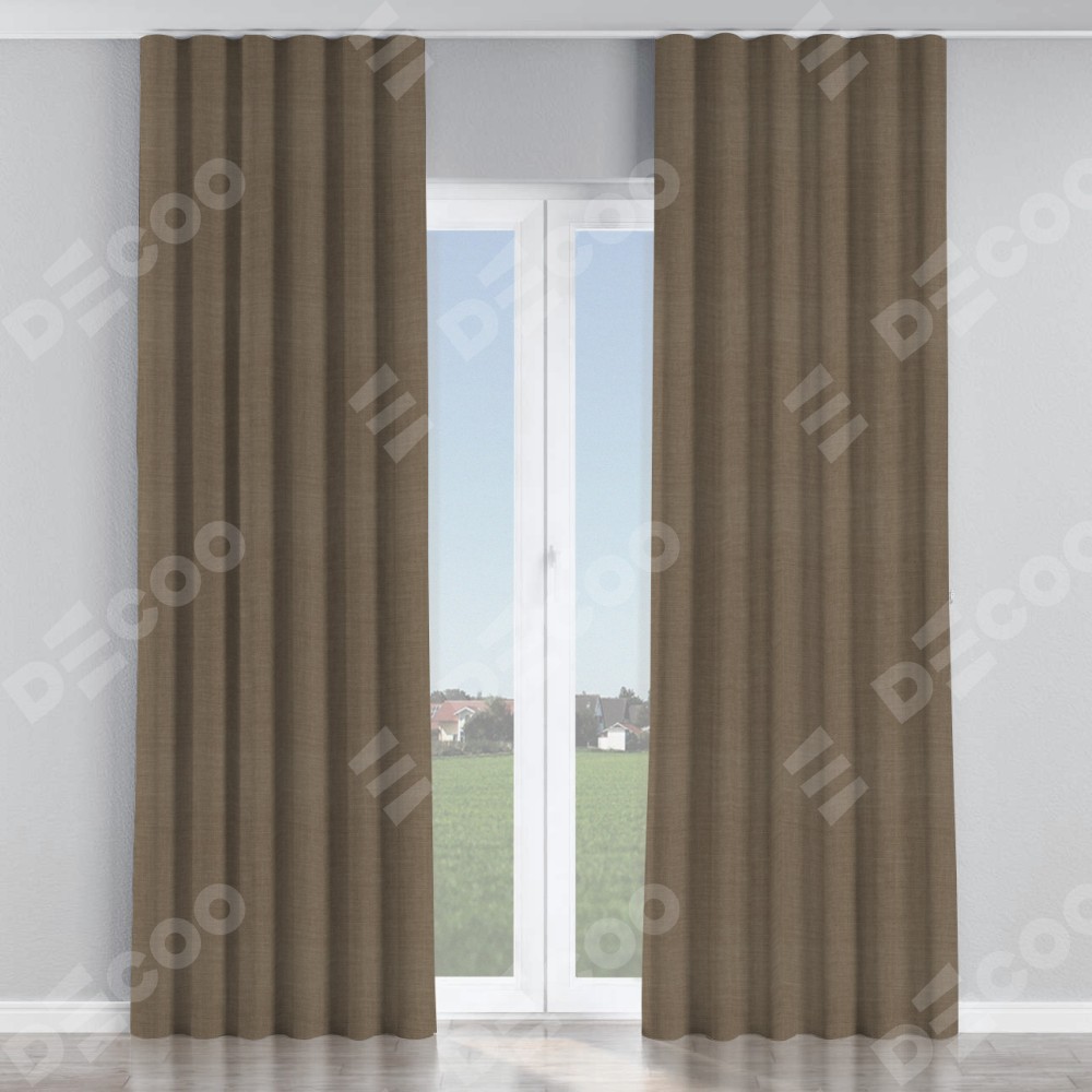 Комплект прямых штор, от производителя «Cortin», пошиты из ткани лён мокко, артикул ткани 7444. С изнаночной стороны в верхней части штор пристрачивается шторная лента с декоративными складками «Волна». Для создания элегантных складок прямые шторы шьются по стандарту с коэффициентом 1:2 (на 100 см. ширины проёма 200 см. ширины ткани).