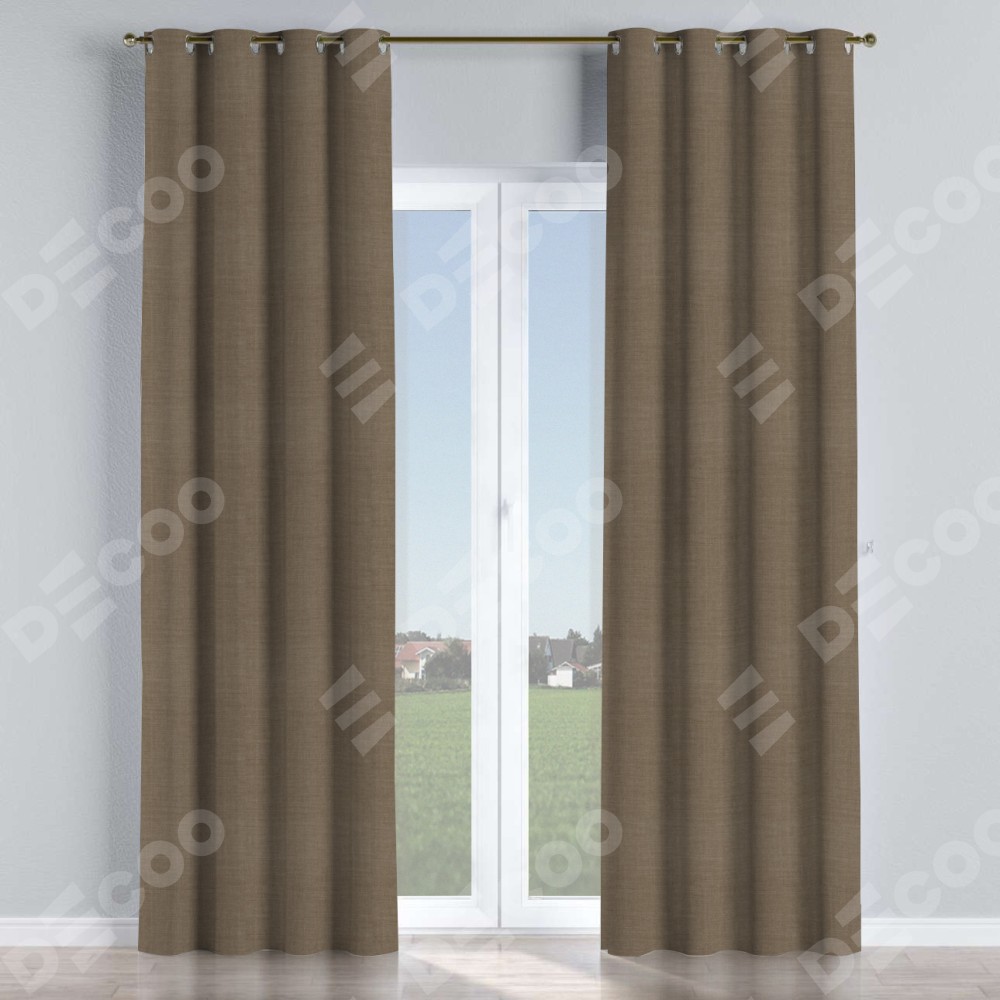 Комплект прямых штор, от производителя «Cortin», пошиты из ткани лён мокко, артикул ткани 7444. Данная модель пошита на люверсах, комплектуется на выбор круглым карнизом и подходит для монтажа на стену или потолок. Прямые шторы на люверсах шьются по стандарту с коэффициентом 1/2 (на 100 см. ширины проёма 200 см. ширины ткани), отличительным преимуществом данной модели является простой способ монтажа. Достаточно повесить ее на трубу и штора готова!