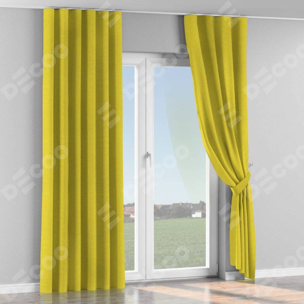 Комплект прямых штор, от производителя «Cortin», пошиты из ткани лён салатовый, артикул ткани 53437. С изнаночной стороны в верхней части штор пристрачивается шторная лента с декоративными складками «Волна». Для создания элегантных складок прямые шторы шьются по стандарту с коэффициентом 1:2 (на 100 см. ширины проёма 200 см. ширины ткани).