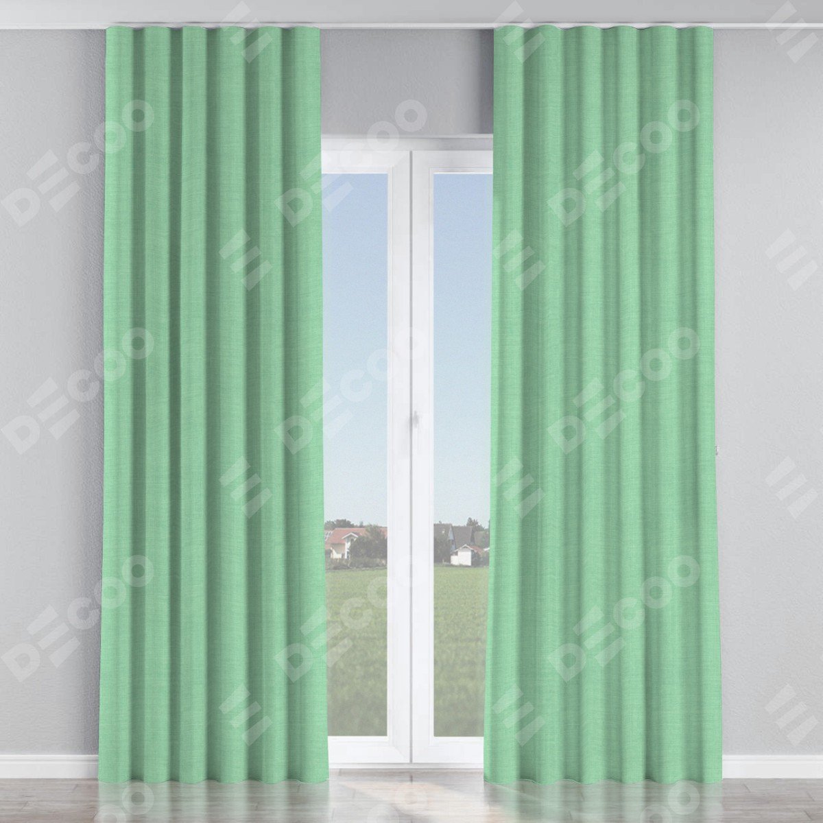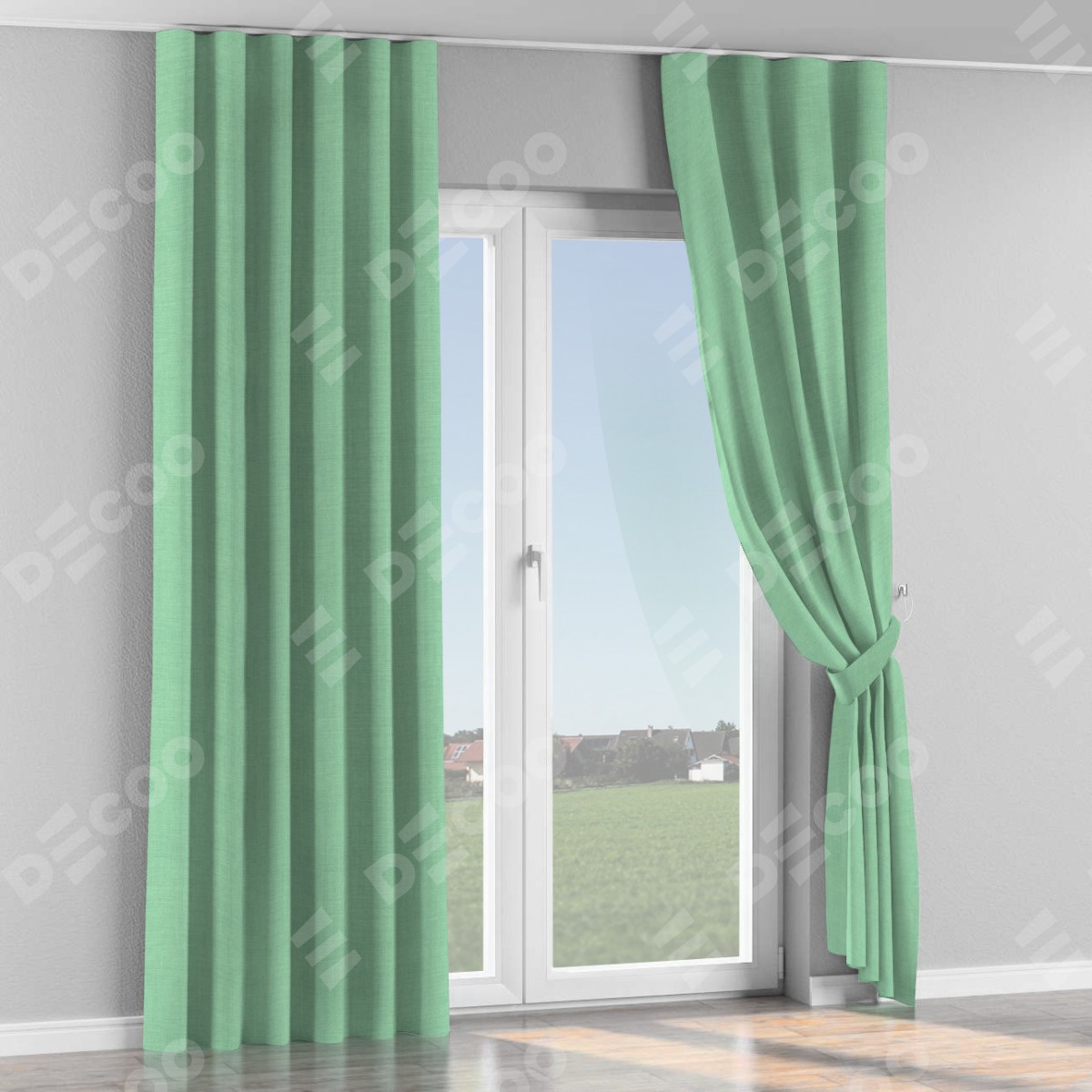 Комплект прямых штор, от производителя «Cortin», пошиты из ткани лён светло-бирюзовый, артикул ткани 74737. С изнаночной стороны в верхней части штор пристрачивается шторная лента с декоративными складками «Волна». Для создания элегантных складок прямые шторы шьются по стандарту с коэффициентом 1:2 (на 100 см. ширины проёма 200 см. ширины ткани).