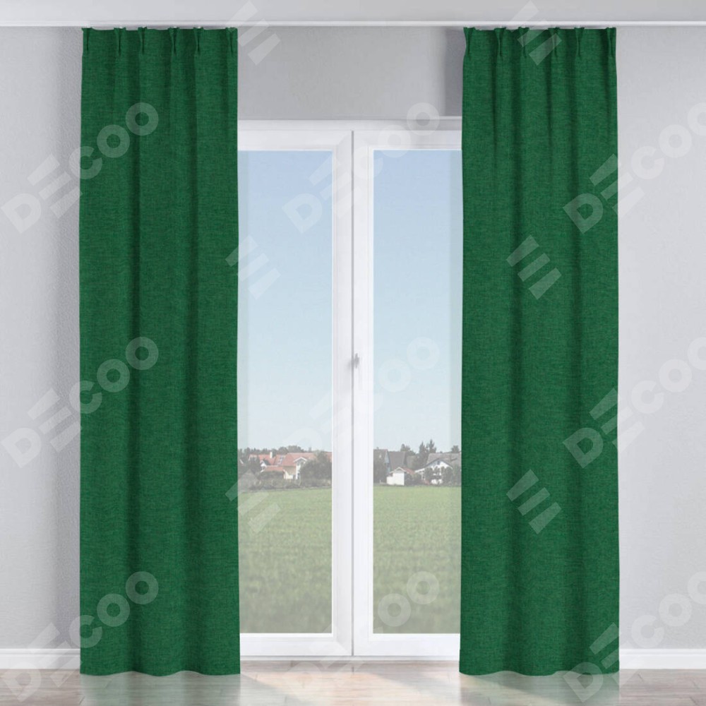 Комплект прямых штор, от производителя «Cortin», пошиты из ткани лён серо-зелёный, артикул ткани 63740. С изнаночной стороны в верхней части штор пристрачивается шторная лента с декоративными складками «Кустик». Для создания элегантных складок прямые шторы шьются по стандарту с коэффициентом 1:2 (на 100 см. ширины проёма 200 см. ширины ткани).