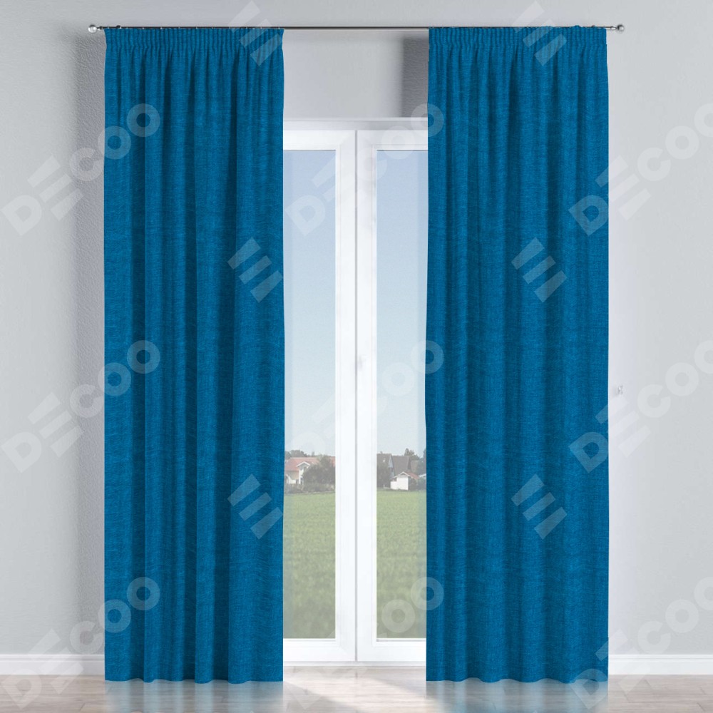Комплект прямых штор, от производителя «Cortin», пошиты из ткани лён синий, артикул ткани 63742. С изнаночной стороны в верхней части штор пристрачивается шторная лента с декоративными складками «Карандаш». Для создания элегантных складок прямые шторы шьются по стандарту с коэффициентом 1:2 (на 100 см. ширины проёма 200 см. ширины ткани).