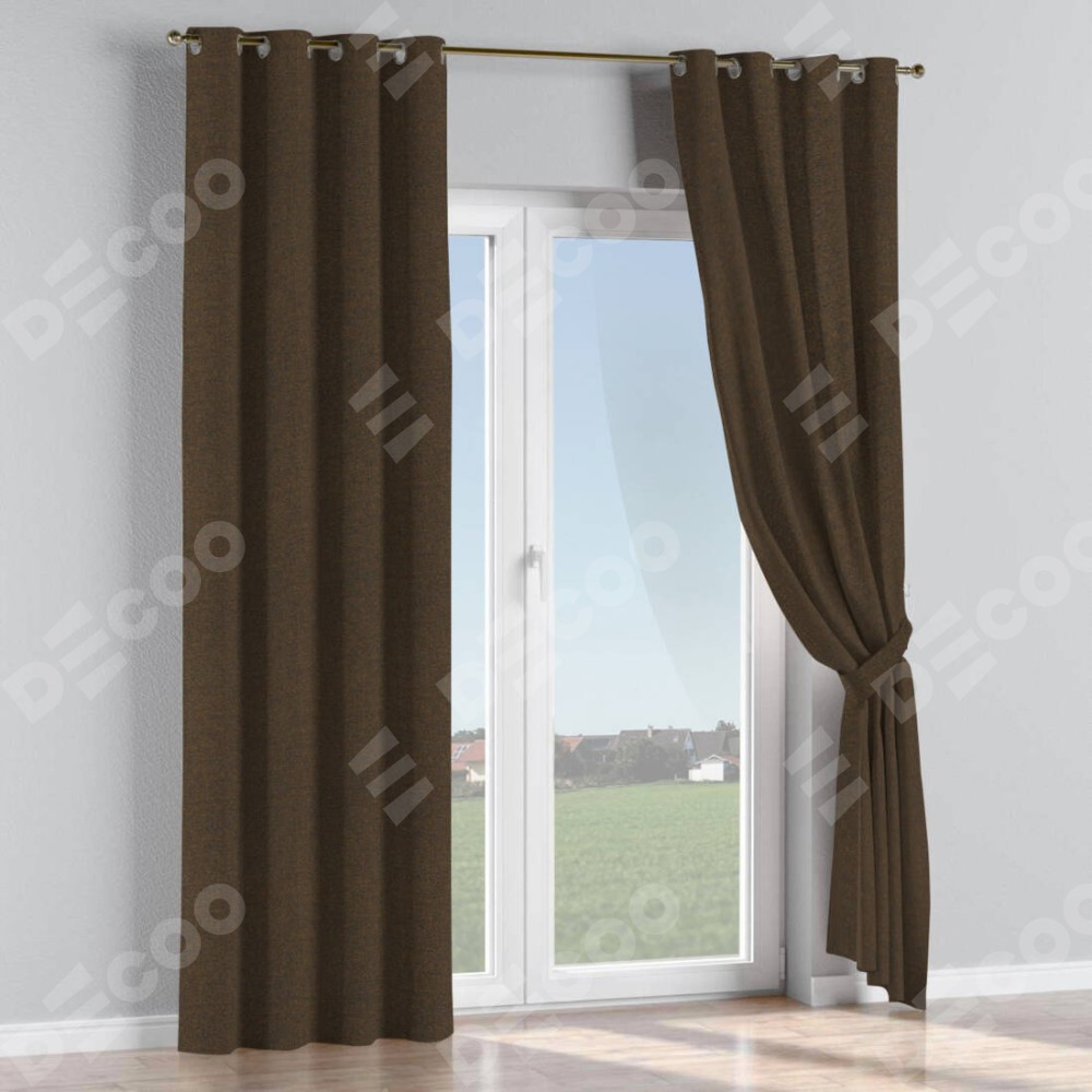 Комплект прямых штор, от производителя «Cortin», пошиты из ткани лён тёмно-коричневый, артикул ткани 53444. Данная модель пошита на люверсах, комплектуется на выбор круглым карнизом и подходит для монтажа на стену или потолок. Прямые шторы на люверсах шьются по стандарту с коэффициентом 1/2 (на 100 см. ширины проёма 200 см. ширины ткани), отличительным преимуществом данной модели является простой способ монтажа. Достаточно повесить ее на трубу и штора готова!