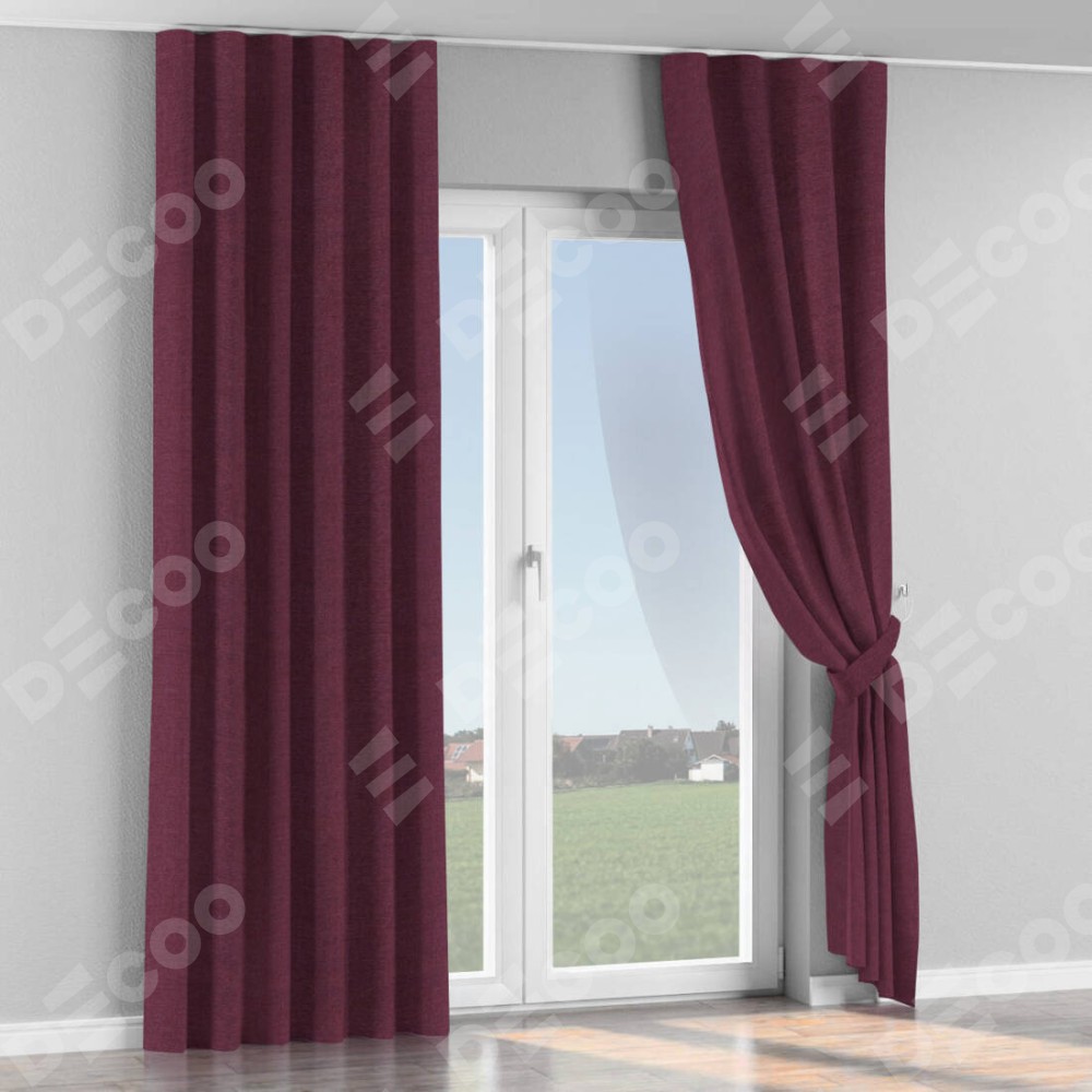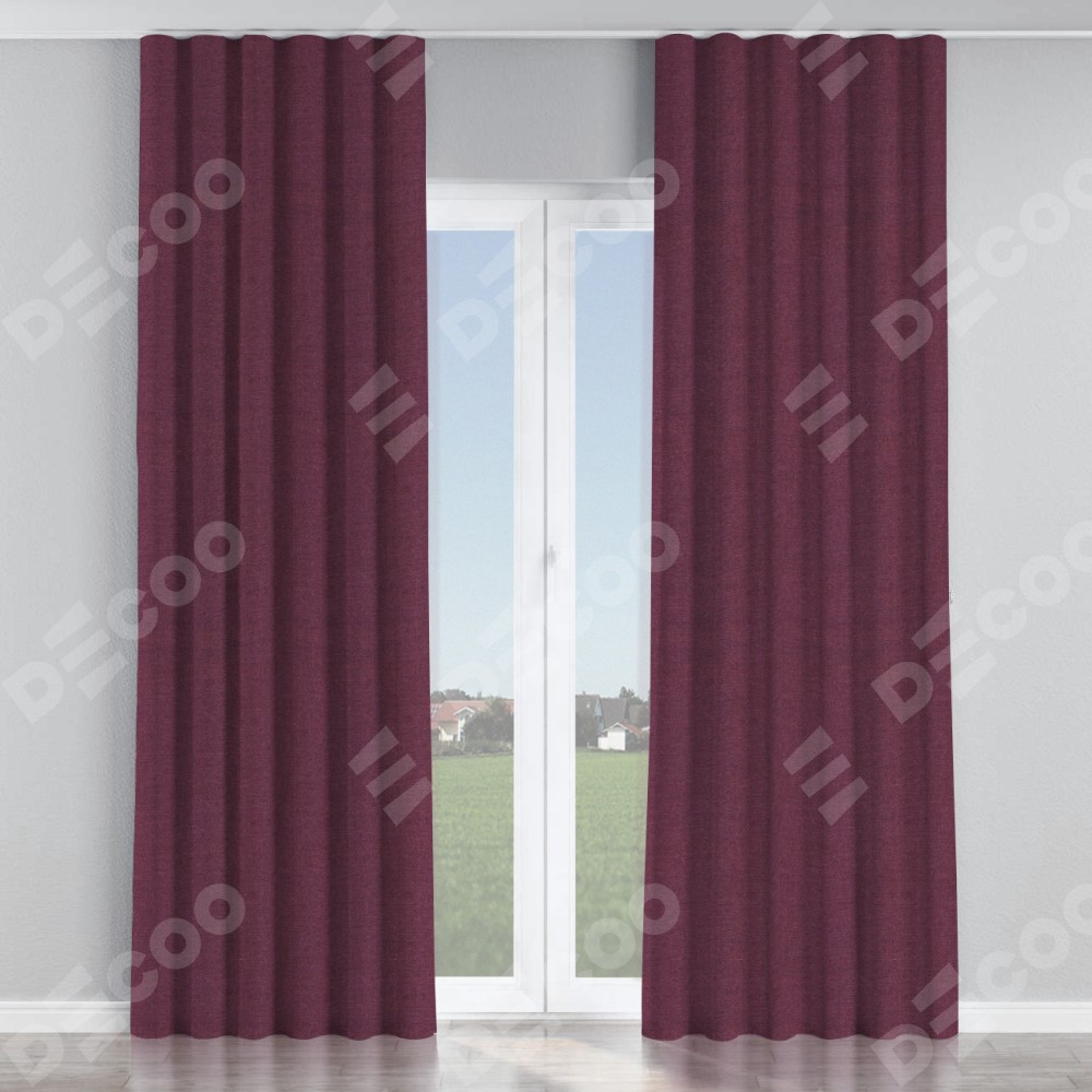 Комплект прямых штор, от производителя «Cortin», пошиты из ткани лён фиолетовый, артикул ткани 85907. С изнаночной стороны в верхней части штор пристрачивается шторная лента с декоративными складками «Волна». Для создания элегантных складок прямые шторы шьются по стандарту с коэффициентом 1:2 (на 100 см. ширины проёма 200 см. ширины ткани).