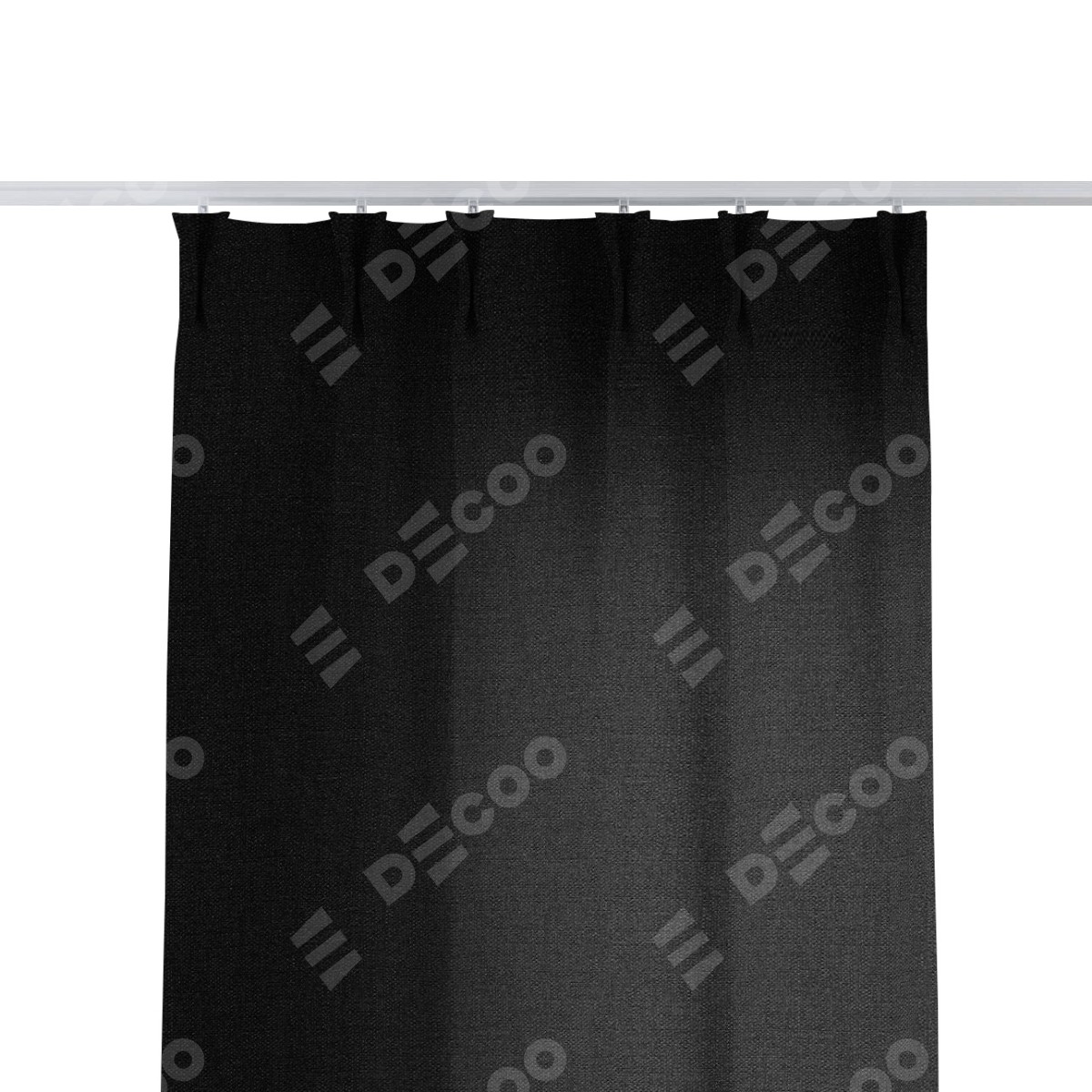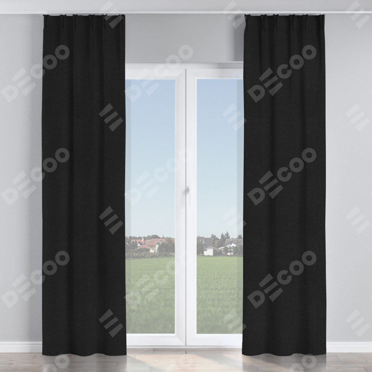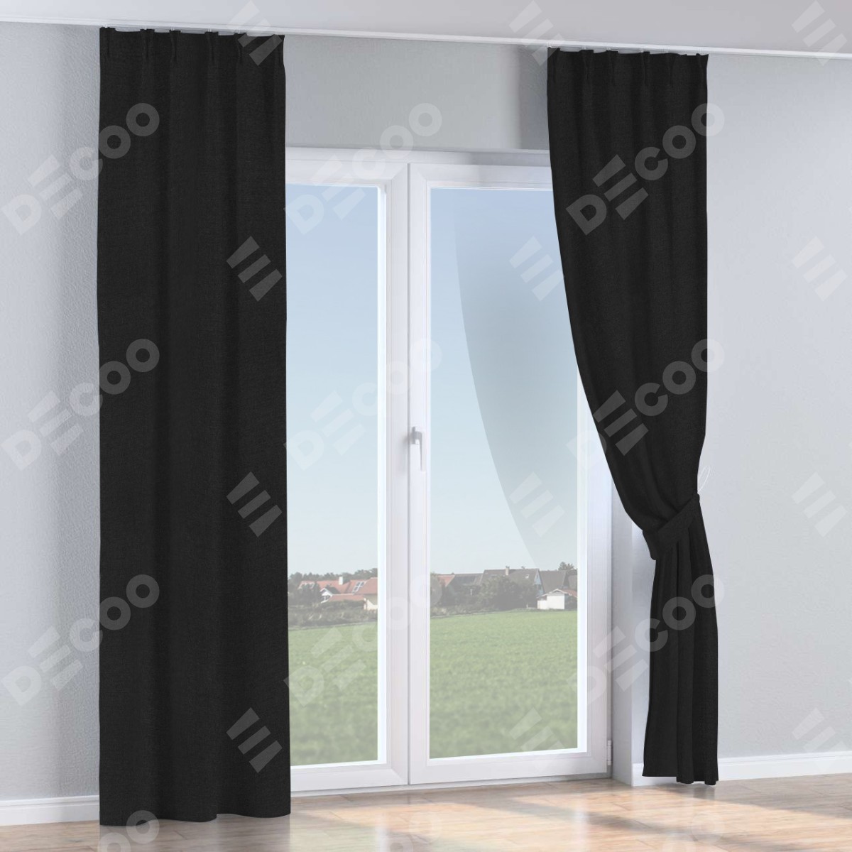 Комплект прямых штор, от производителя «Cortin», пошиты из ткани лён черный, артикул ткани 85927. С изнаночной стороны в верхней части штор пристрачивается шторная лента с декоративными складками «Кустик». Для создания элегантных складок прямые шторы шьются по стандарту с коэффициентом 1:2 (на 100 см. ширины проёма 200 см. ширины ткани).