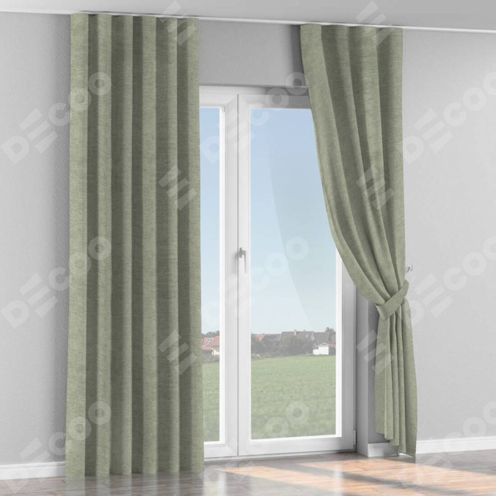 Комплект прямых штор, от производителя «Cortin», пошиты из ткани лён кашемир серый new, артикул ткани 21618. С изнаночной стороны в верхней части штор пристрачивается шторная лента с декоративными складками «Волна». Для создания элегантных складок прямые шторы шьются по стандарту с коэффициентом 1:2 (на 100 см. ширины проёма 200 см. ширины ткани).